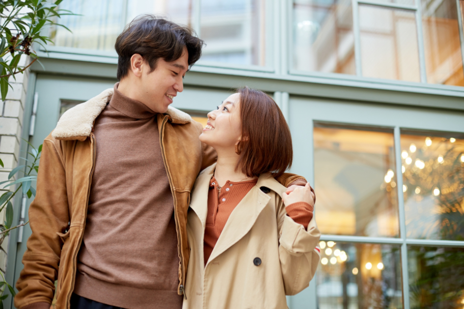 夫婦や30代カップルには、色味を揃えたリンクコーデが人気です。ベージュやネイビーなど落ち着いたトーンなら、写真にも自然に映え、寒い日でも快適に過ごせるでしょう。