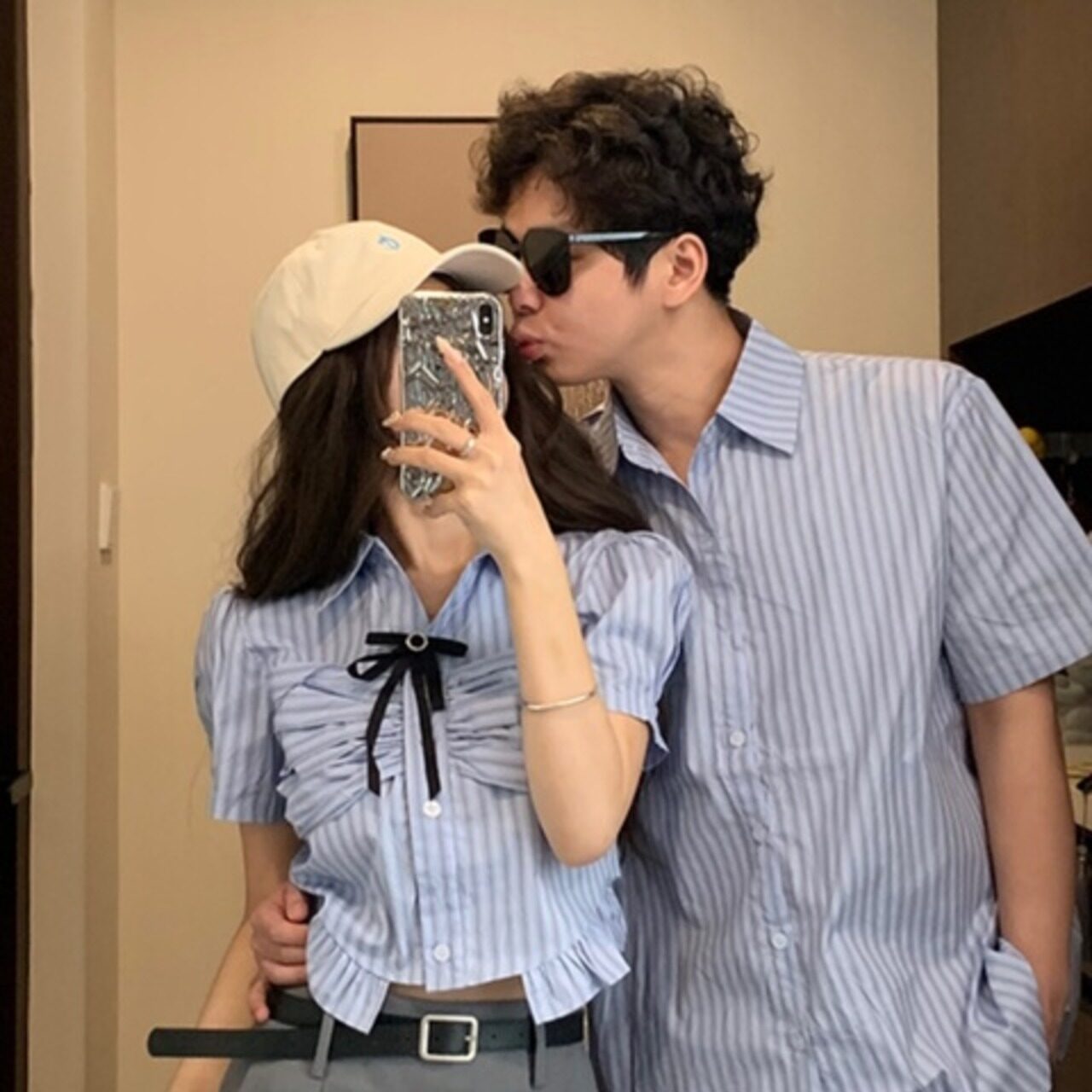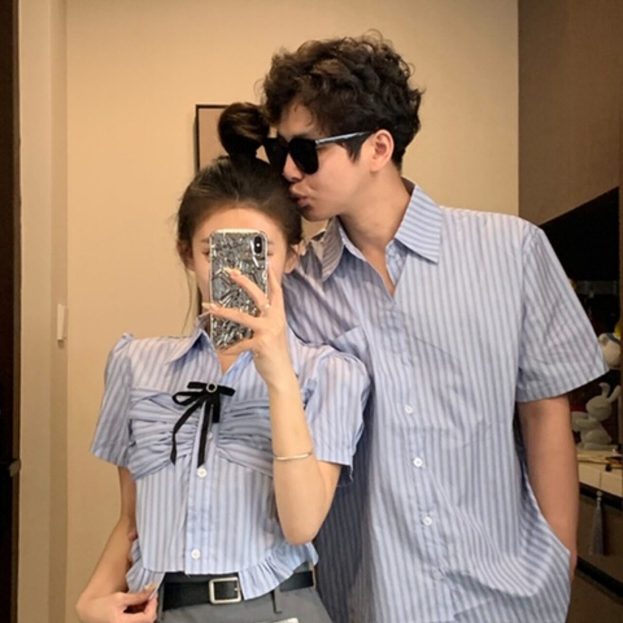 シンプルで清潔感のあるブルーストライプ柄が特徴のペアルックシャツ。韓国カレッジ風の爽やかなデザインで、デートや旅行、休日のお出かけに最適です。軽やかで通気性の良い素材を使用し、快適な着心地を実現。カジュアルながらも上品さを演出でき、さりげなくお揃いを楽しみたいカップルにぴったりのアイテムです。リラックス感ときちんと感を兼ね備えたスタイルで、ふたりのリンクコーデをおしゃれに格上げします。