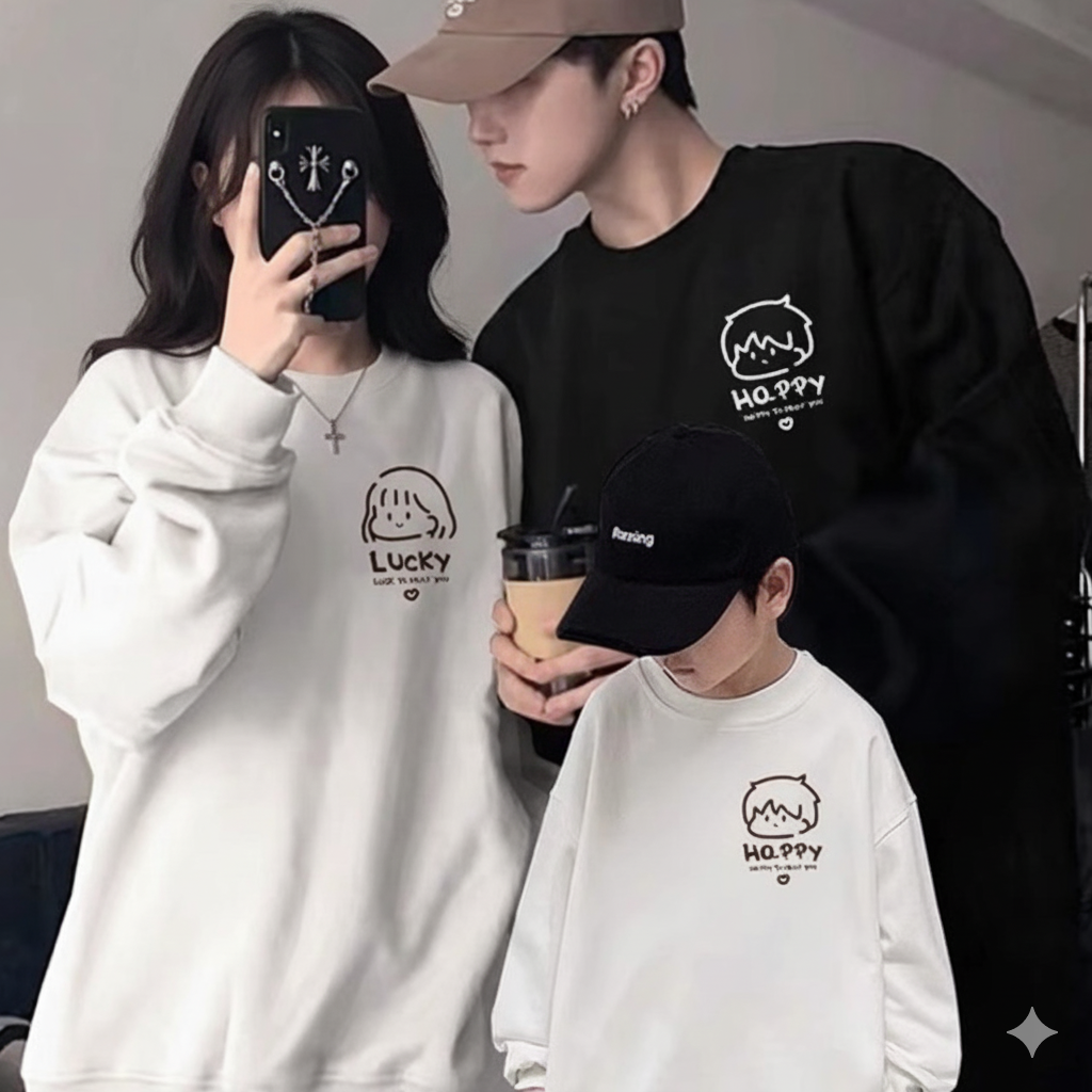 親子ペアルック HAPPY & LUCKY 似顔絵ロゴトレーナー