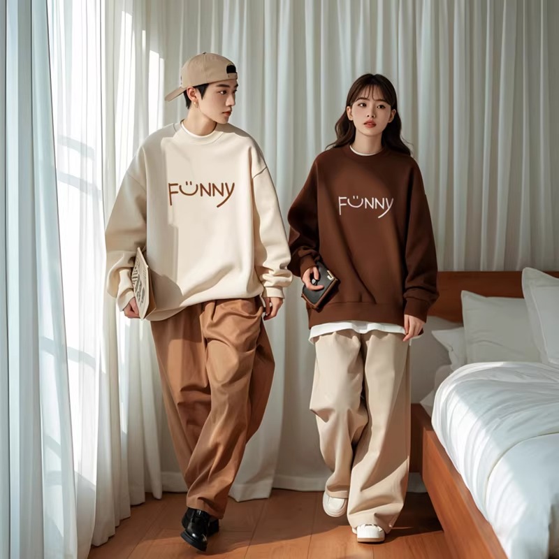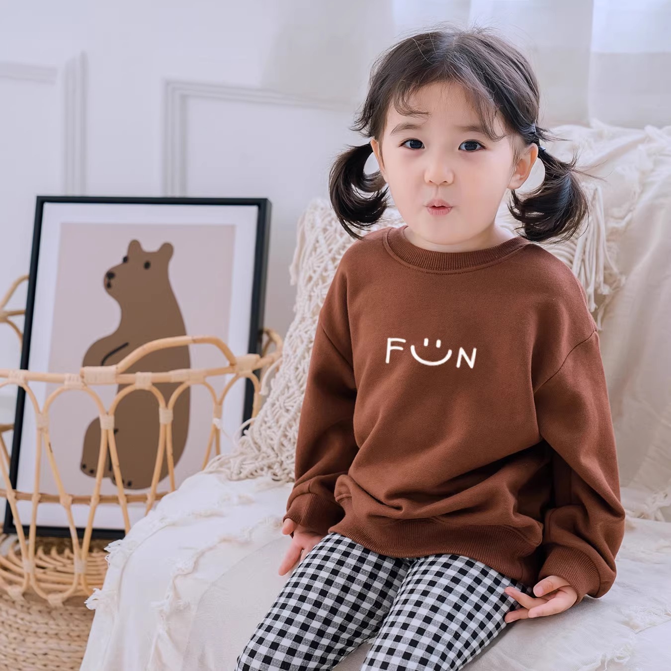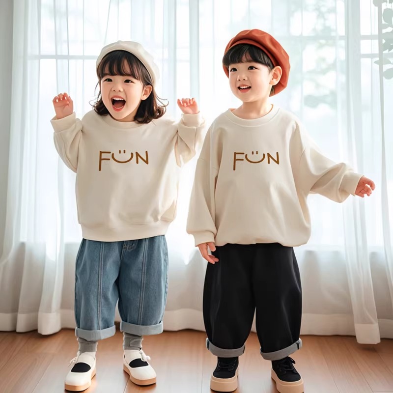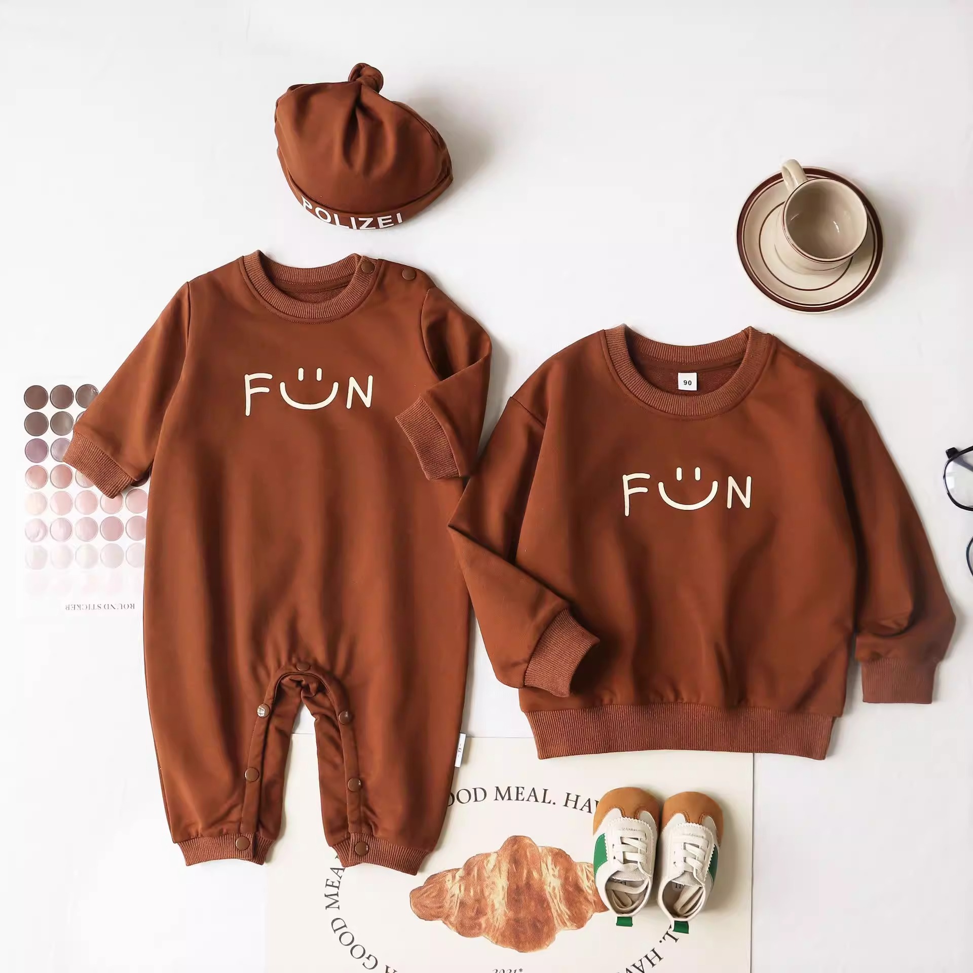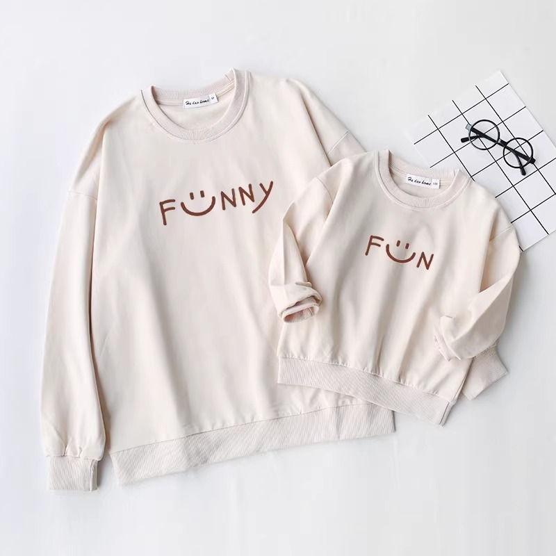 家族みんなが笑顔になれる、遊び心たっぷりの「Funnyスマイル トレーナー・ロンパース」。 フロントに描かれた「FUN」のロゴと、Uがニコちゃんマークになった愛らしいデザインが、家族の絆をほっこりと彩ります。 カラーは、温かみのあるブラウンと清潔感あふれるアイボリーの2色展開。 落ち着いたくすみカラーなので、派手すぎず日常のコーディネートに自然に馴染みます。 大人・キッズ用のトレーナーに加え、赤ちゃん用のロンパースもご用意。 柔らかなスウェット素材で動きやすく、家族旅行や記念日のファミリーフォトにも最適です。 この一着で、何気ない日常が特別な思い出に変わります。