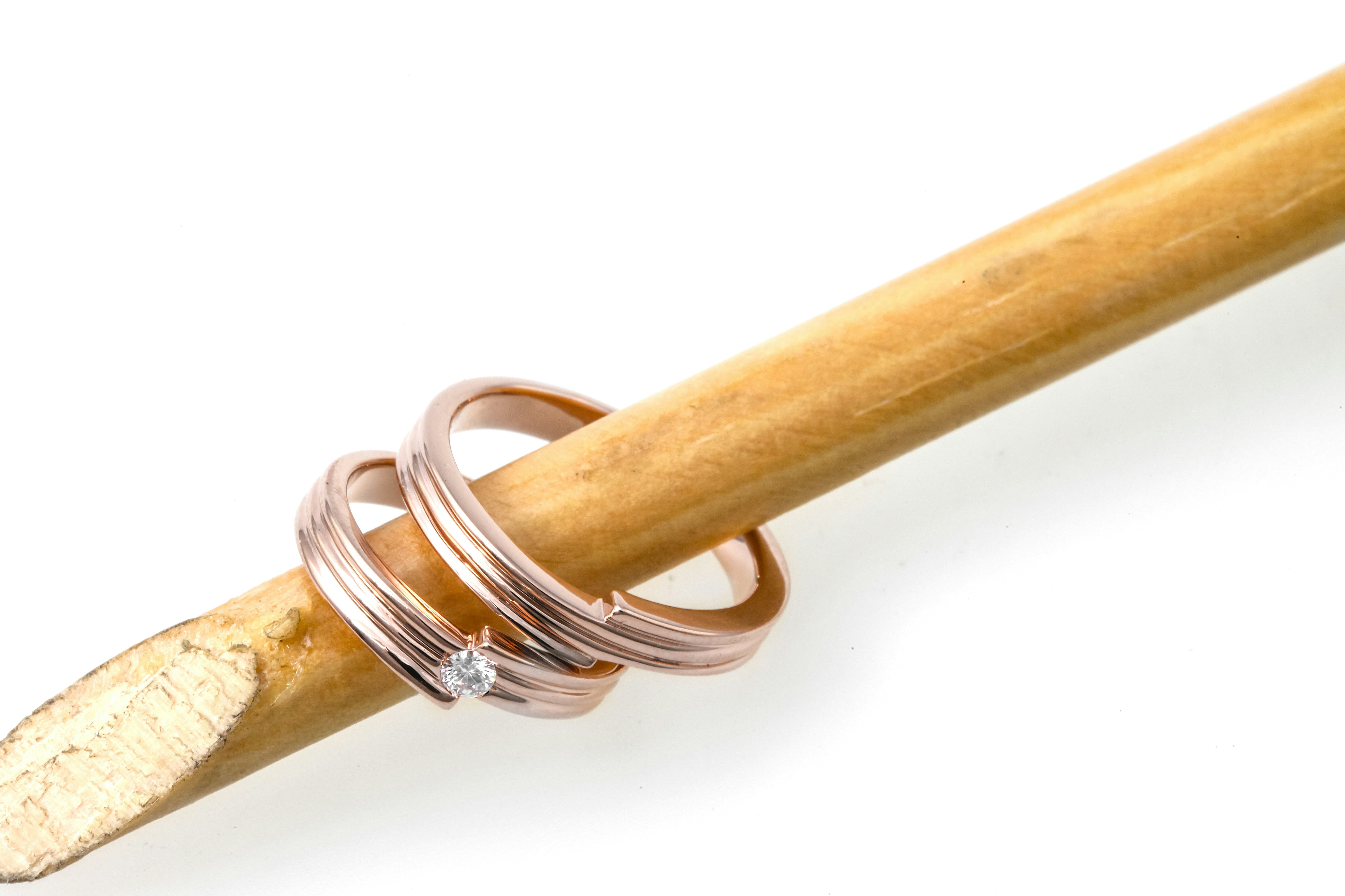 リングを重ねるとハートが浮かび上がる、ロマンチックなペアリング。