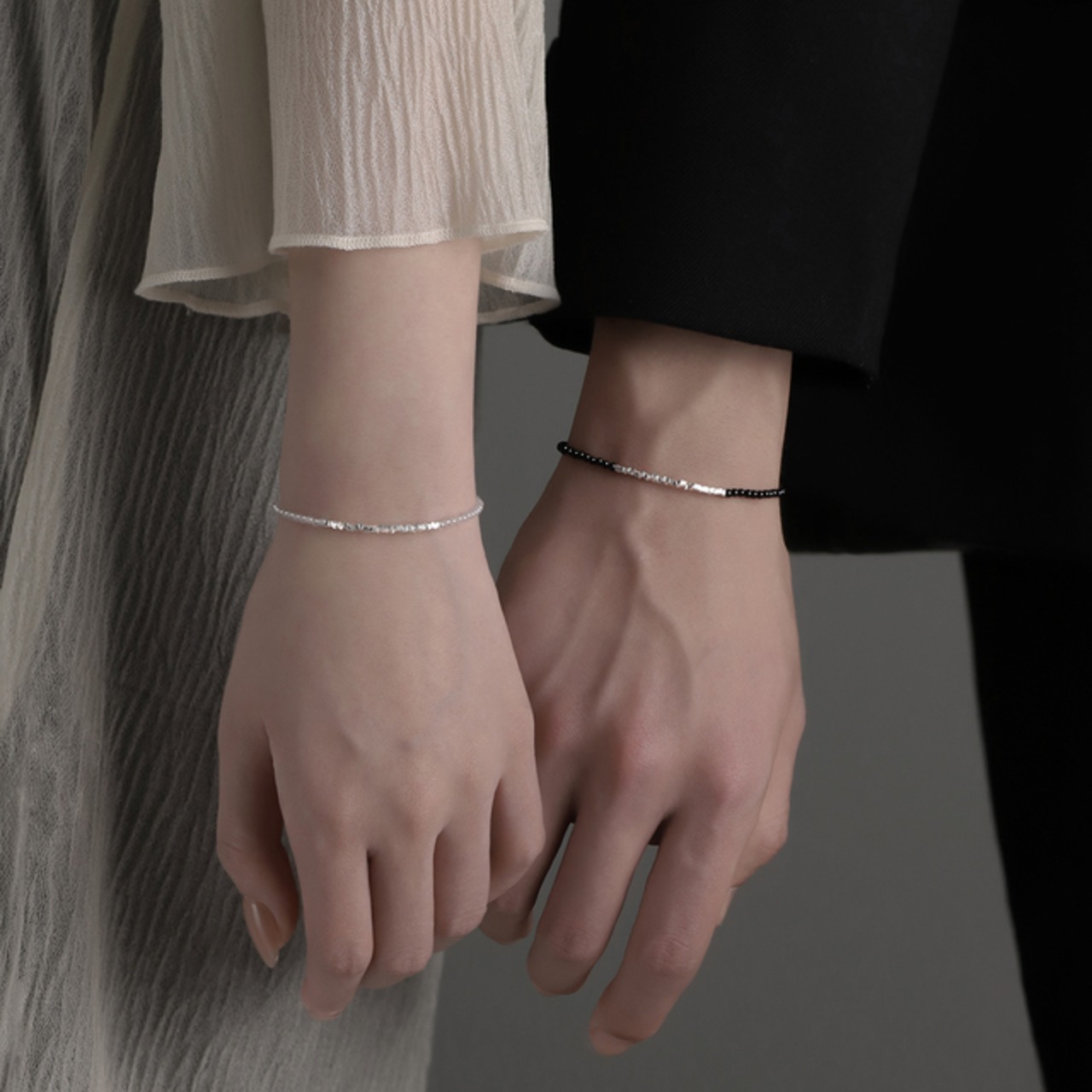 シンプルながら上品な輝きを放つクラッシュシルバー風ブレスレット。 高級感あふれる純銀の質感が特徴で、華奢なデザインはどんなスタイルにも自然に馴染みます。 ユニセックス仕様でカップルにぴったり。二人で身につけることで、さりげなく絆を感じながら、洗練された印象を演出します。 手元に華やかさを添え、お二人の個性を引き立てる一品。デートや記念日、特別な日のプレゼントにも最適なアクセサリーです。