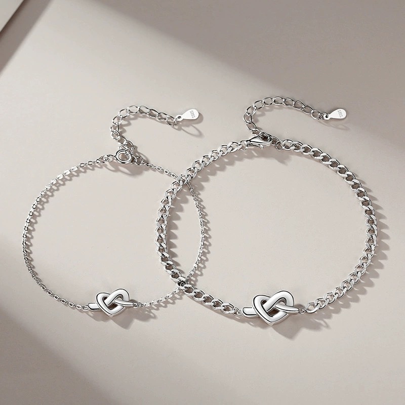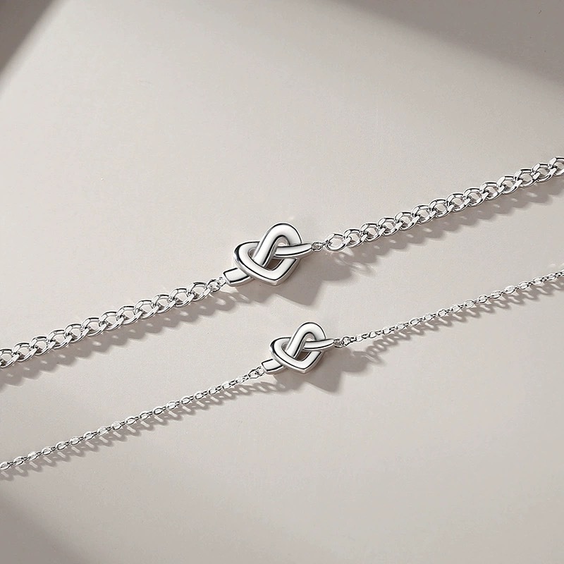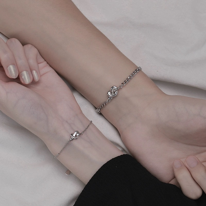 ほどよく主張するノット(結び)モチーフが印象的な、シンプルで上品なペアブレスレット。 「結び」には、ふたりの絆や想いをつなぐ意味が込められており、毎日身につけたくなるお守りのような存在です。 細めのチェーンと洗練されたシルバーカラーが、手元にさりげない輝きをプラス。 カジュアルからきれいめまで幅広く合わせやすく、ペアルック初心者にもおすすめです。 誕生日や記念日、さりげないサプライズギフトにもぴったりな特別なアイテムです。