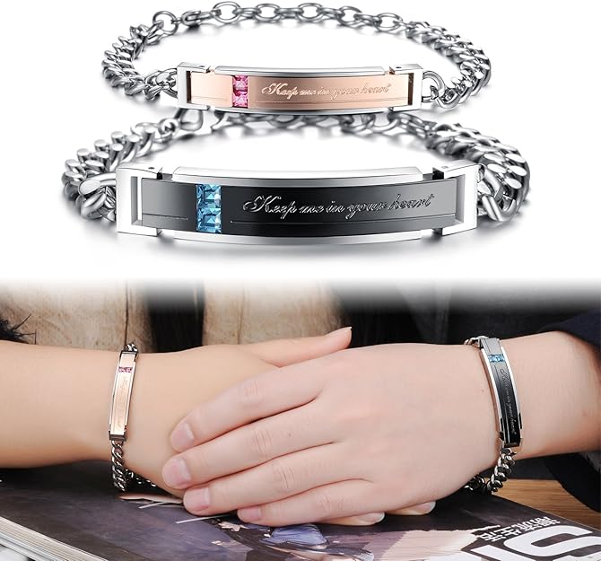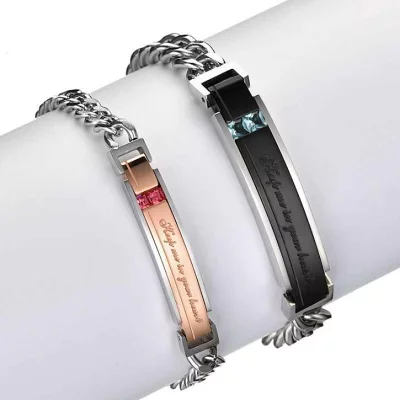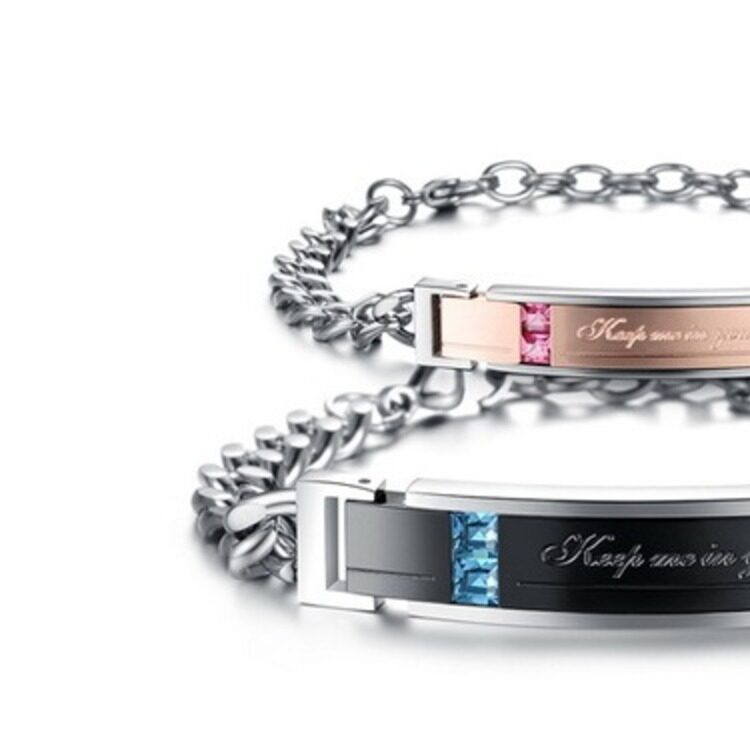 上品な輝きを放つジルコンがアクセントになった、カップル用ペアブレスレット。