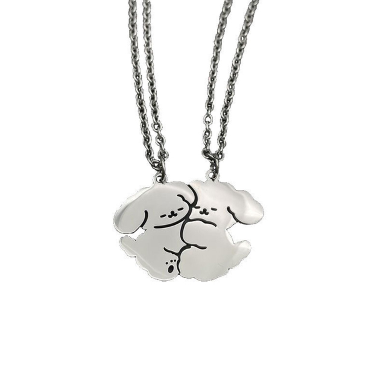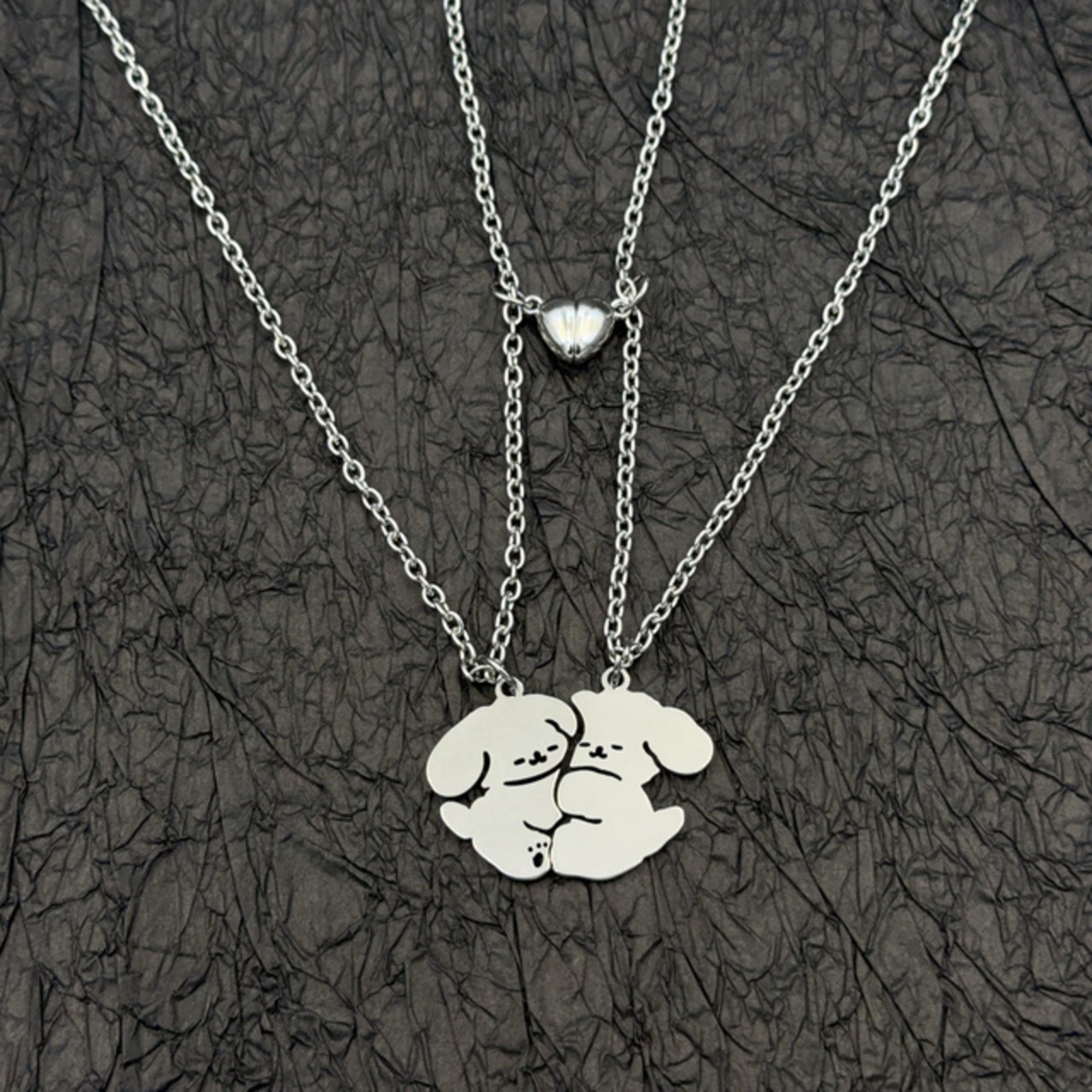 ペアアクセサリー ハグ子犬デザイン ネックレス2点セット ハート型マグネット付き