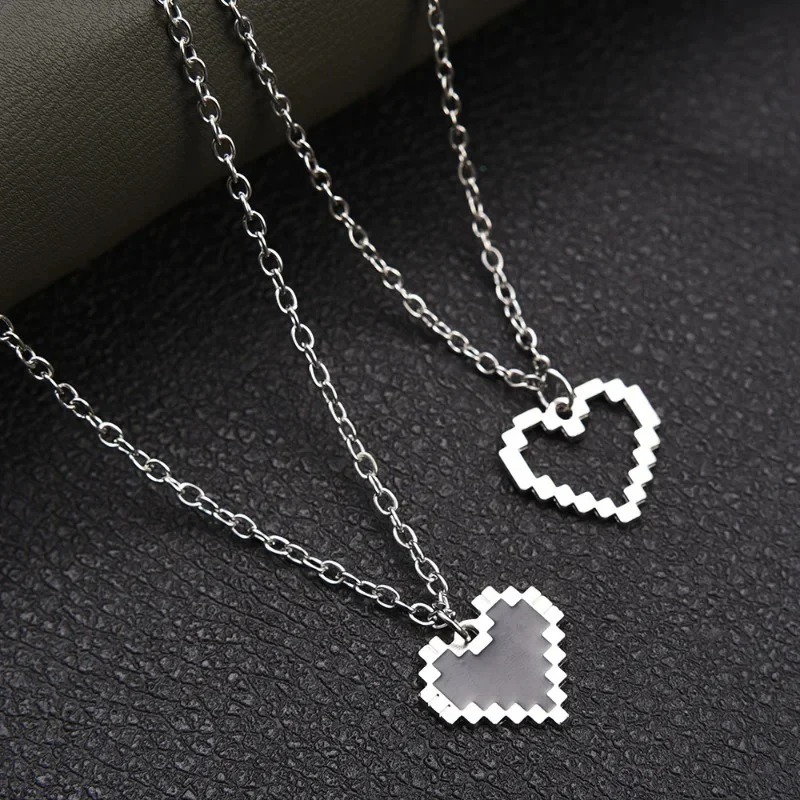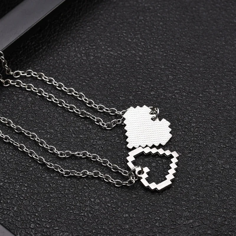 ペアアクセサリー ピクセルハートネックレス 【2点セット】