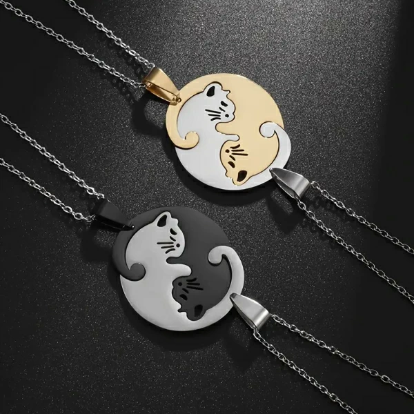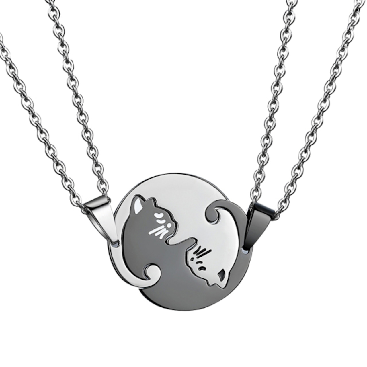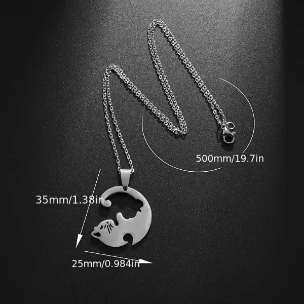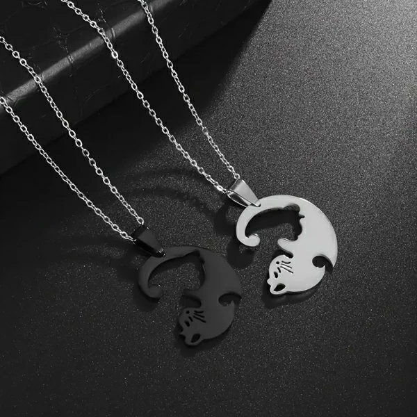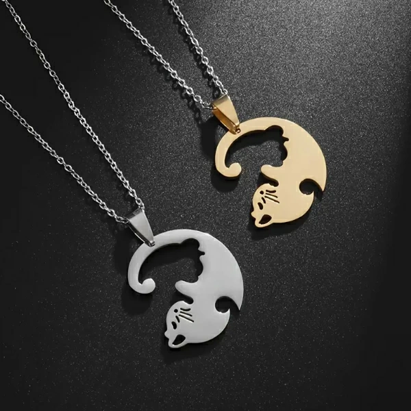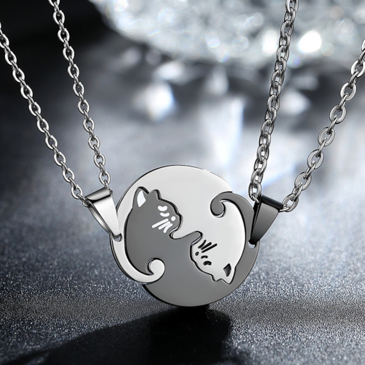 カップルペアルック【運命のムーンキャットネックレス】は、シルバーの輝きが二人のスタイルを上品に引き立てるペアアクセサリーです。月と猫をモチーフにしたデザインは、お揃いで身につけることで絆を感じられる特別なアイテム。シンプルながら洗練された印象で、デートや記念日、日常使いにもぴったりです。学生カップルや大切な人へのプレゼントにもおすすめです。