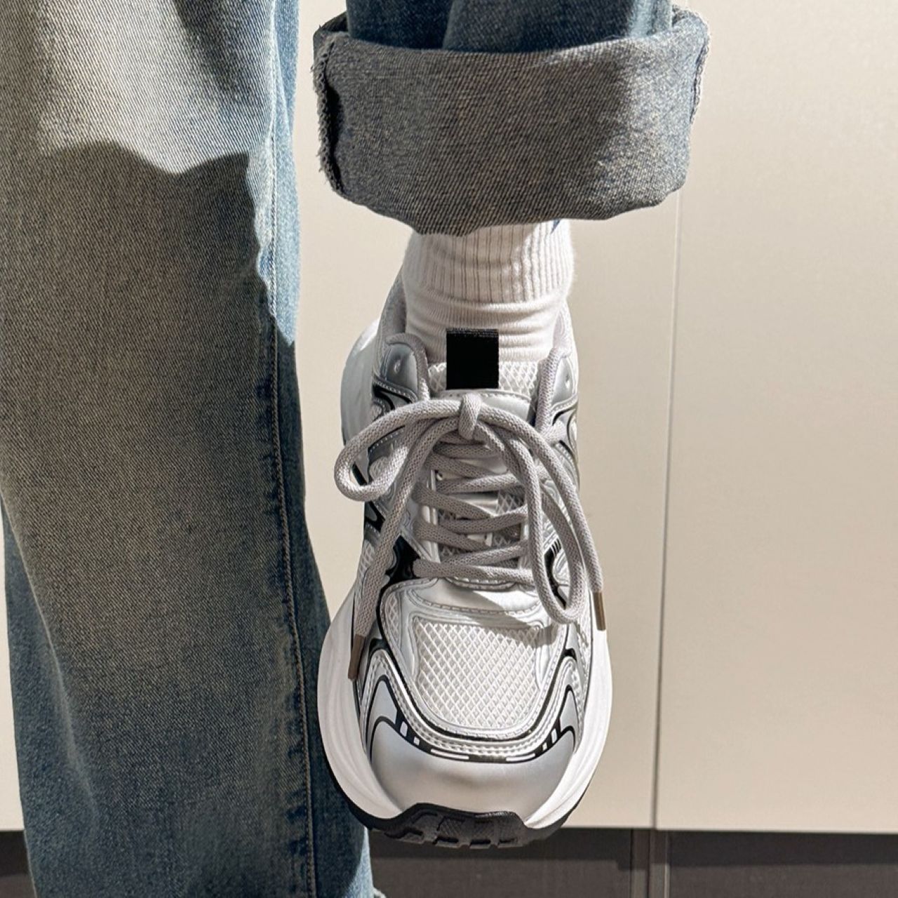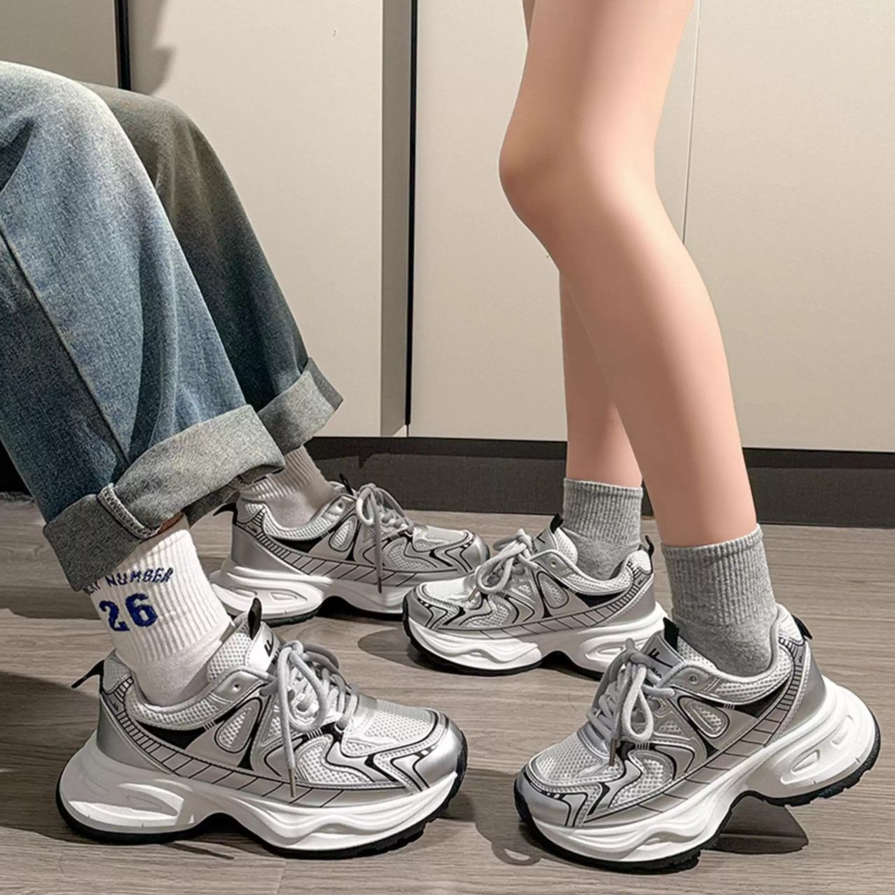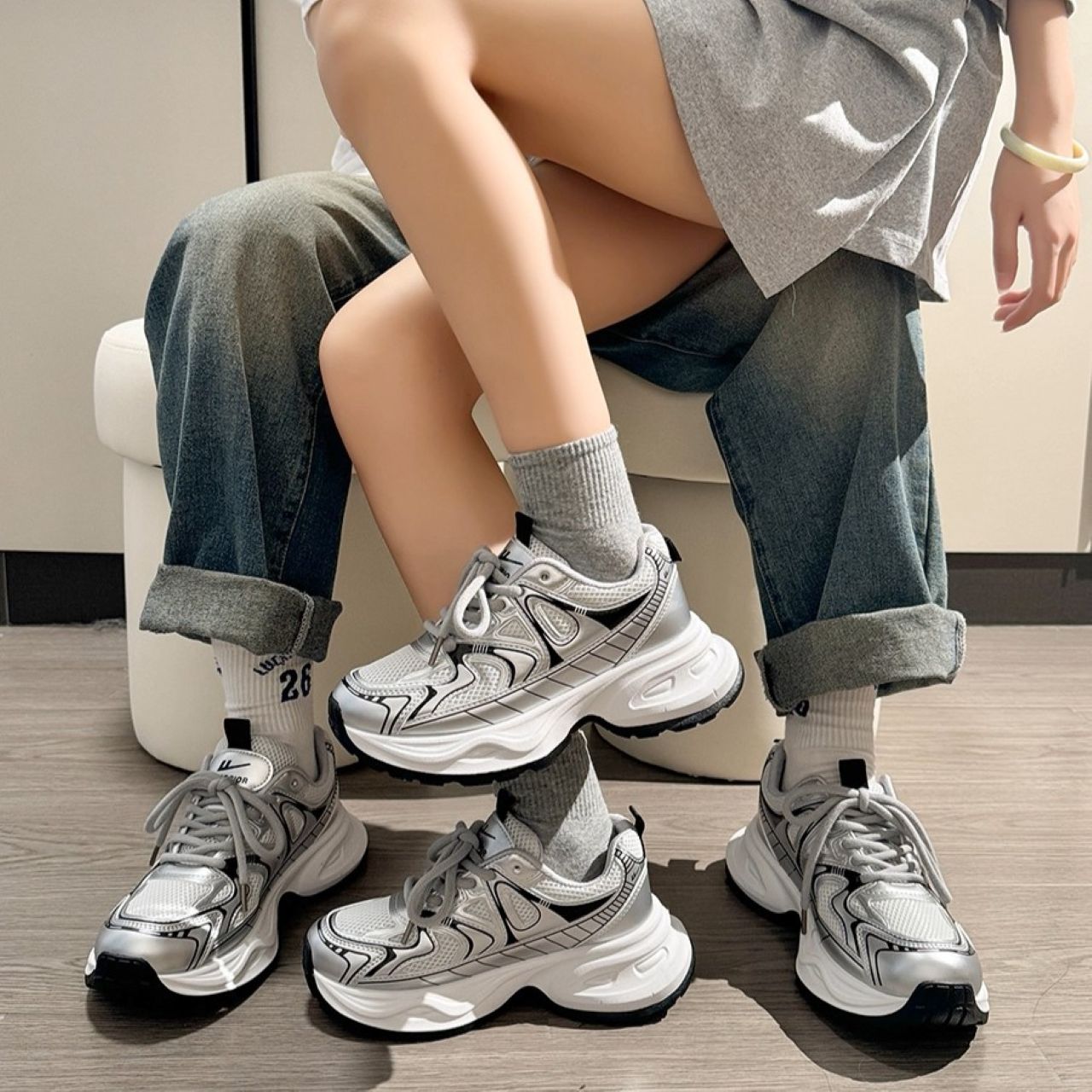 ペアルック シルバーグレー スポーツカジュアル カップルスニーカー