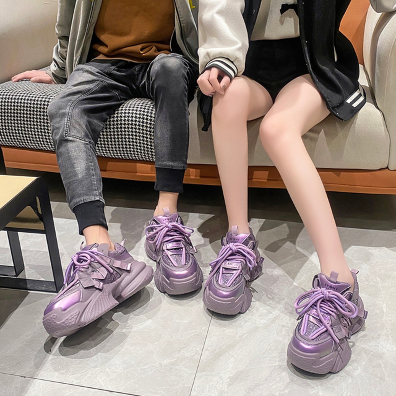 ペアルック 厚底ダッドスニーカー 春夏香港スタイル カジュアルシューズ 身長アップ効果あり