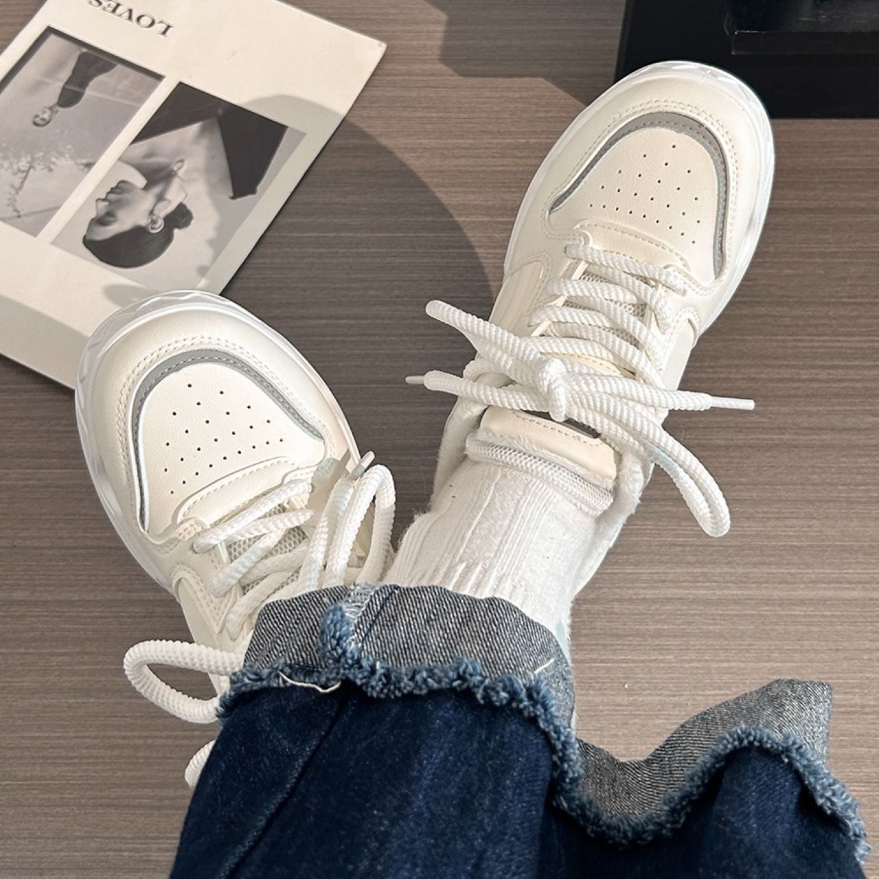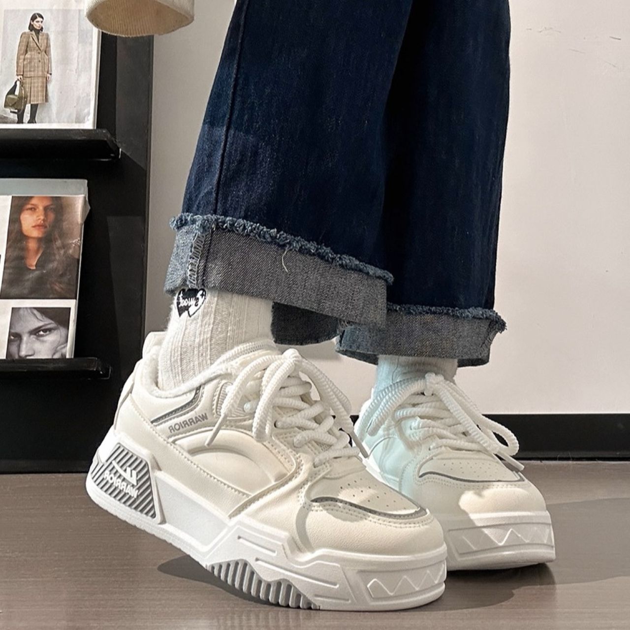 ペアルック 白い厚底スニーカーは、軽やかで長時間履いても疲れにくいカップル向けアイテムです。シンプルながら存在感のあるデザインでリンクコーデに最適。約4cmの厚底ソールがスタイルアップと快適なクッション性を両立し、約800gの軽さで長時間のお出かけでも足元をしっかりサポートします。