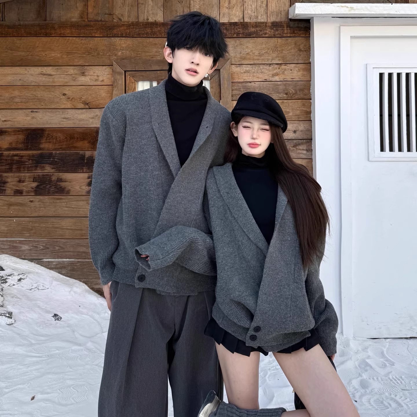 カップルペアルック ショールカラー クラシカルニットカーディガン