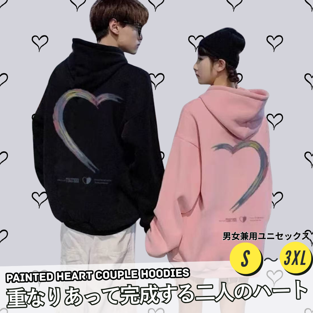 ペアルック ペイント風ハートデザインパーカー【2点セット】
