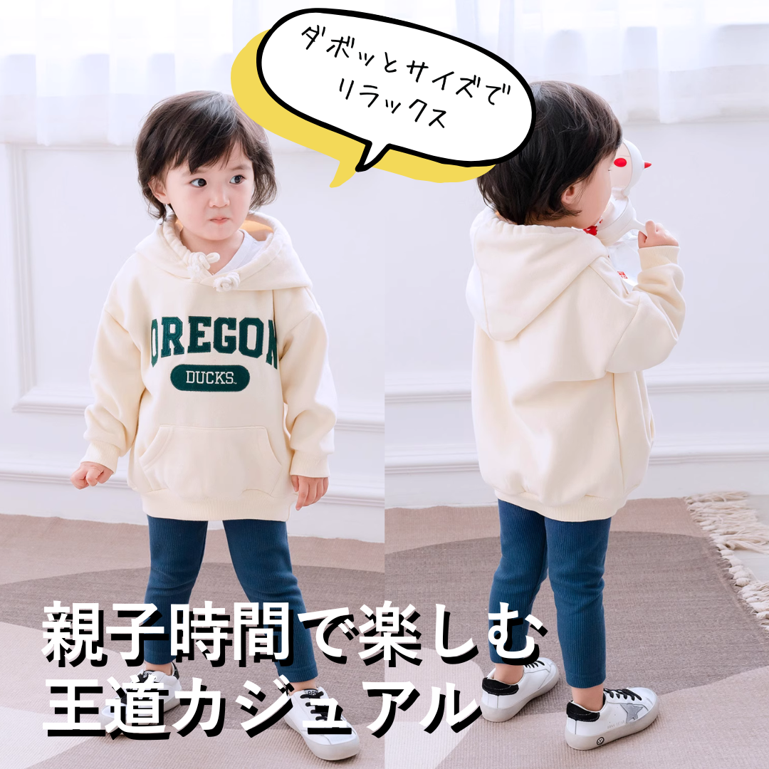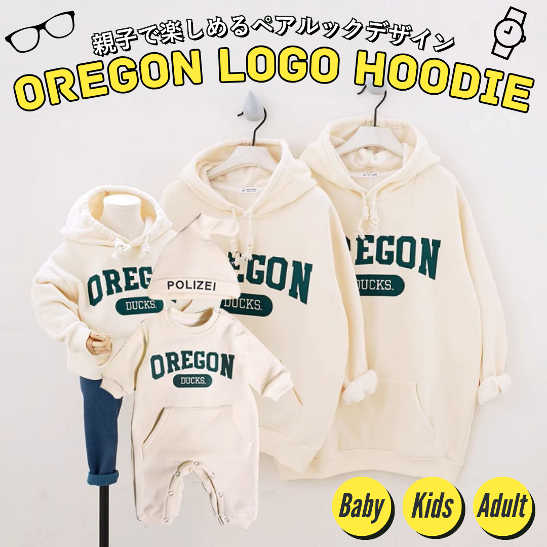 親子ペアルック OREGONロゴ入りパーカー 家族お揃いスウェット