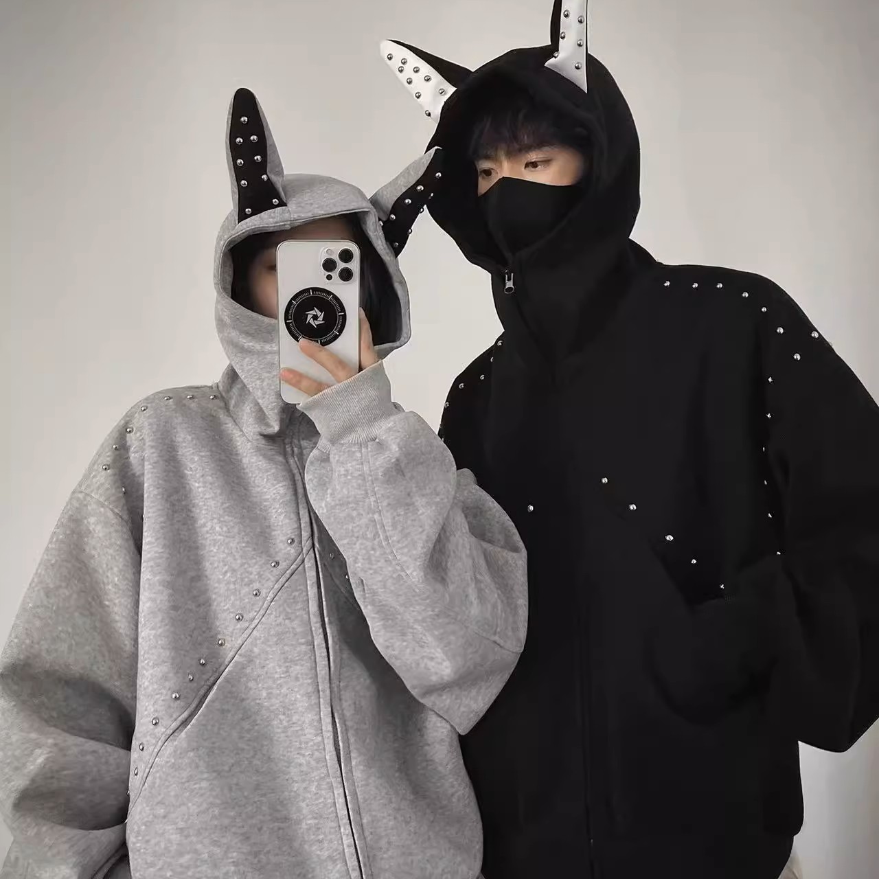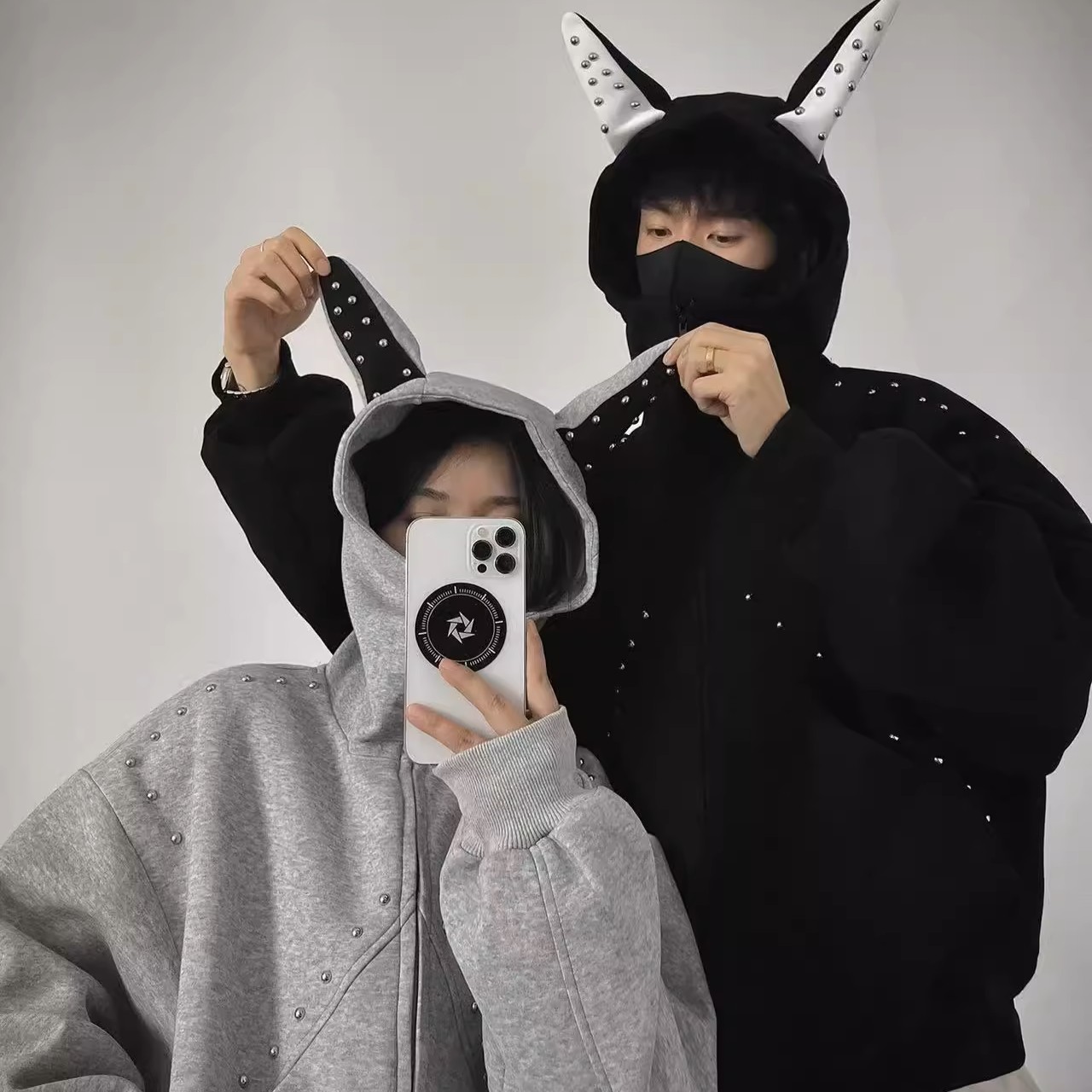 カップルペアルック【ドーベルマンスタッズスウェットパーカー】は、クールさと存在感を兼ね備えたスタイリッシュなアイテムです。フロントのドーベルマンスタッズデザインが印象的で、カジュアルながらも都会的でエッジの効いた雰囲気を演出します。ユニセックス仕様のため、カップルでお揃いにすれば、さりげなくリンクしたコーデが完成。デートや街歩き、仲間とのお出かけなど、さまざまなシーンで二人の個性を際立たせる一着です。