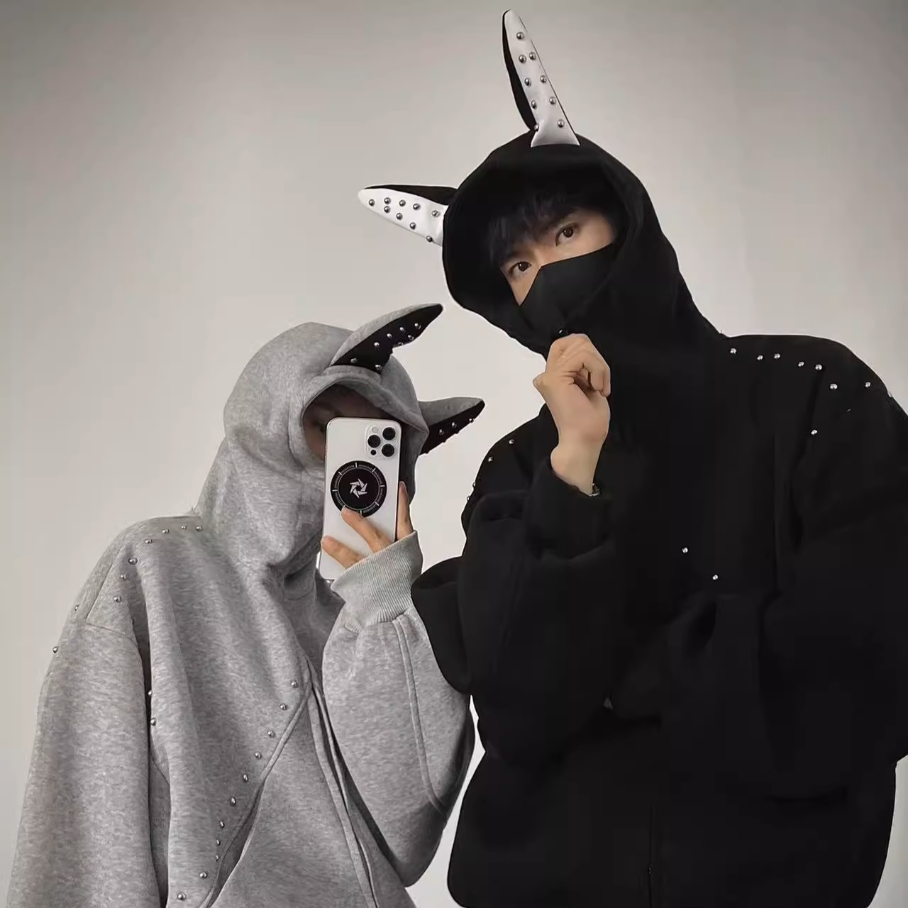 カップルペアルック ドーベルマンスタッズスウェットパーカー ユニセックス カジュアル 男女兼用