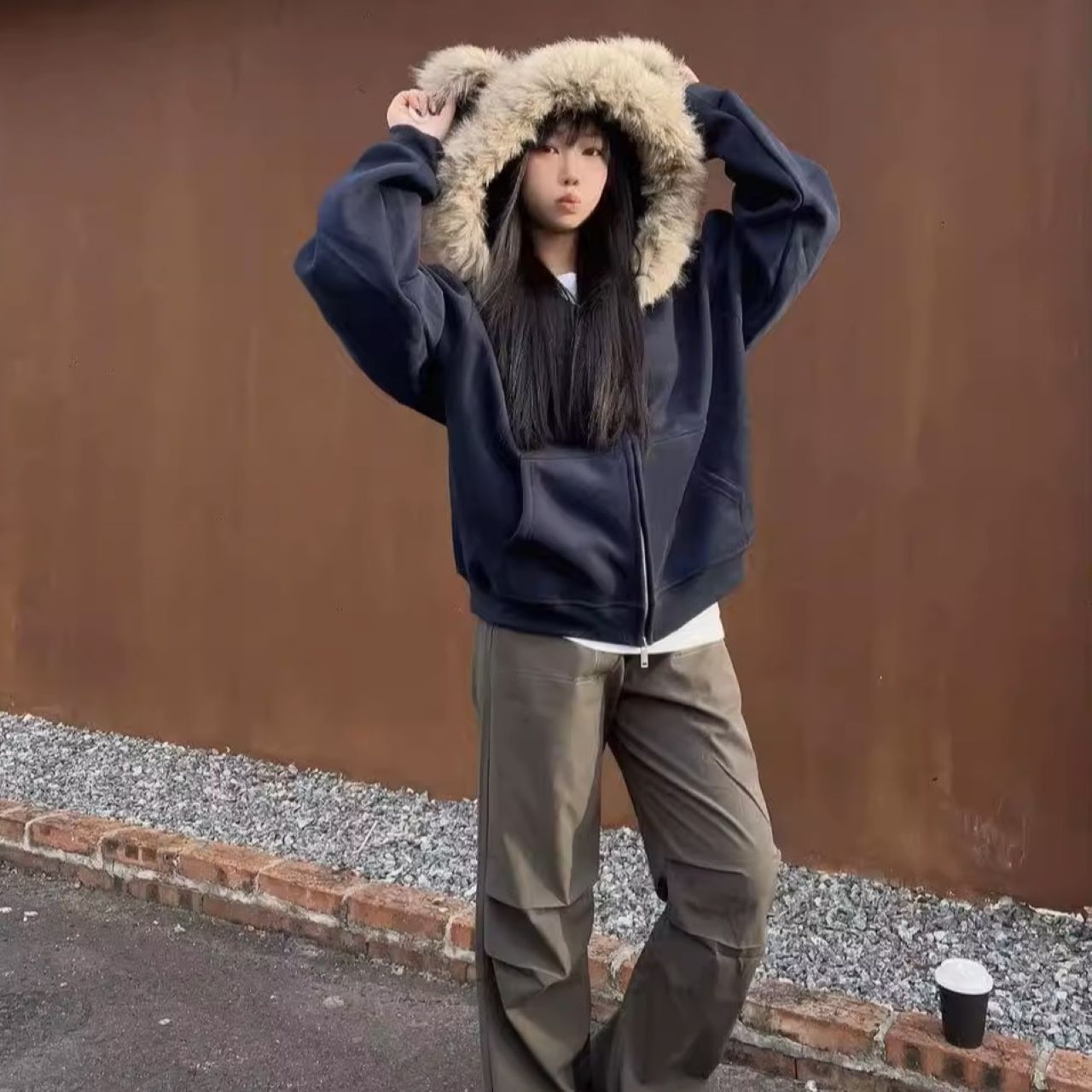 カップルペアルック【ファー付き ベアプリントパーカー【2点セット】】は、愛らしさと温かみを兼ね備えたアイテムです。ふわふわのファーとクマの耳付きデザイン、そしてキュートなベアプリントが魅力。カジュアルながら特別感のあるスタイルを楽しめます。ユニセックス仕様の2点セットで、デートやお出かけはもちろん、おうち時間にもぴったり。二人の時間をより温かく彩る一着です。