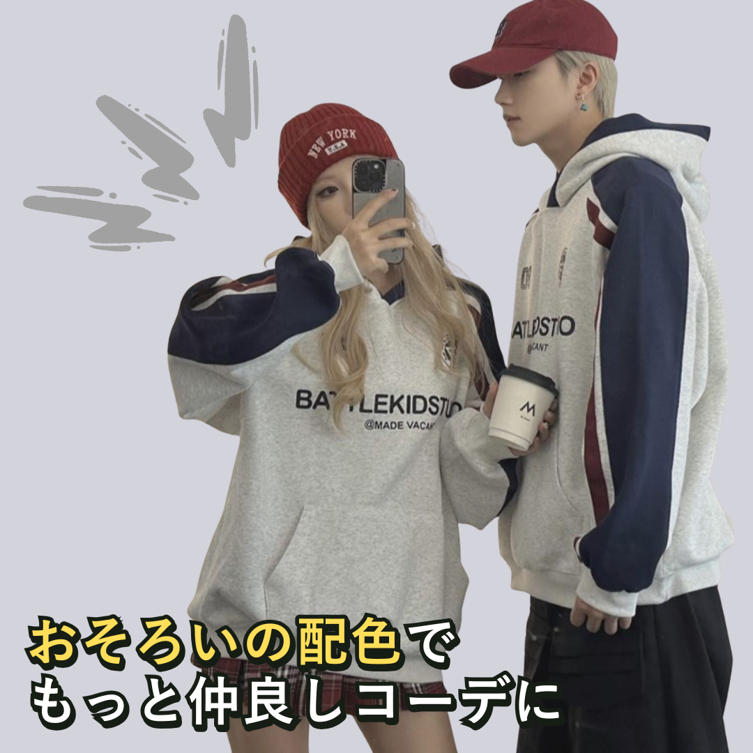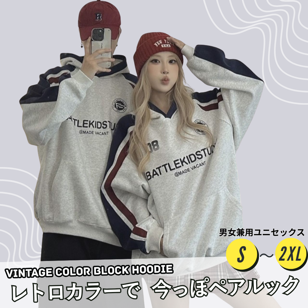 カップルペアルック ヴィンテージカラー配色パーカー【2点セット】