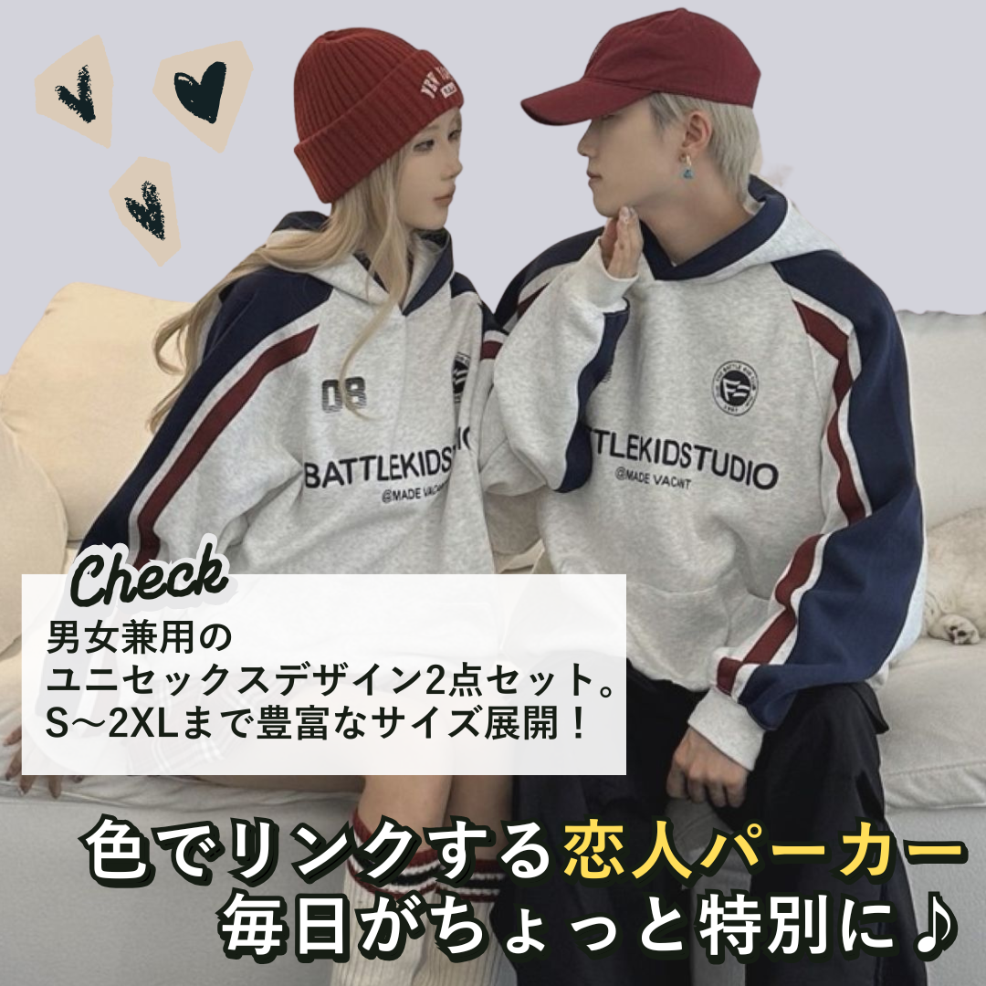 カップルペアルック【ヴィンテージカラー配色パーカー【2点セット】】は、レトロな配色と柔らかな素材感が魅力のアイテムです。カジュアルながらもおしゃれな雰囲気を演出し、二人のスタイルをさりげなく引き立てます。ユニセックス仕様の2点セットで、お揃いコーデを気軽に楽しめるのもポイント。デートやお散歩、週末のお出かけなど、幅広いシーンで活躍する一着です。