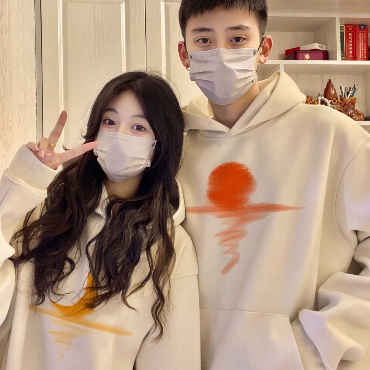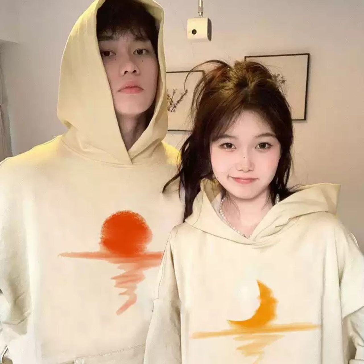 カップルペアルック Moon & Sun ベージュパーカー【2点セット】