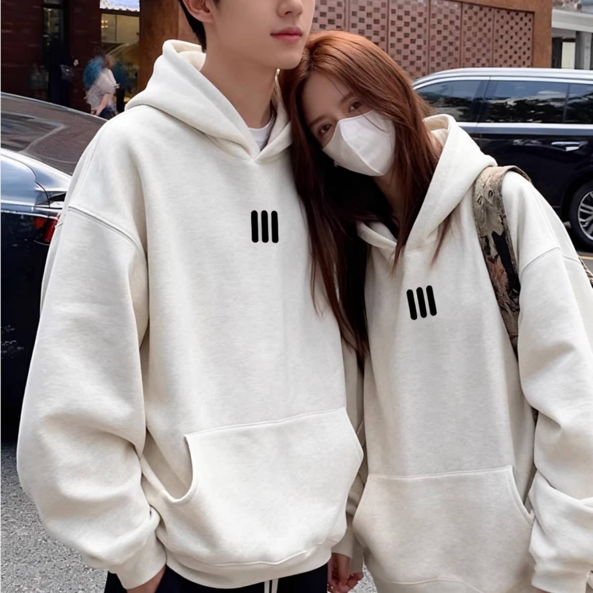 無駄を削ぎ落としたミニマルデザインが魅力のペアパーカー。 胸元の3本ラインロゴが、さりげなく個性をプラスします。 柔らかな素材感と程よくルーズなシルエットで、自然体なのにこなれた印象に。 同じデザインでも着る人によって雰囲気が変わる、ユニセックス仕様です。 モノトーンカラーがコーデに抜け感を与え、 デートやお出かけ、写真を撮る日にもぴったり。 主張しすぎないからこそ長く着られる、 さりげなくおそろいを楽しみたいカップルにおすすめの一着です。