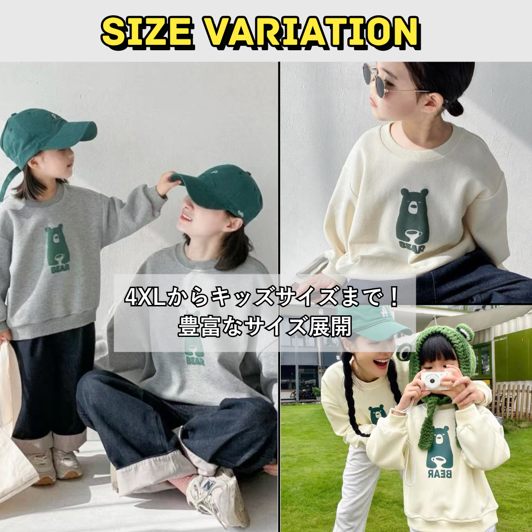 親子ペアルック ナチュラルベアー トレーナー ファミリーお揃いスウェット