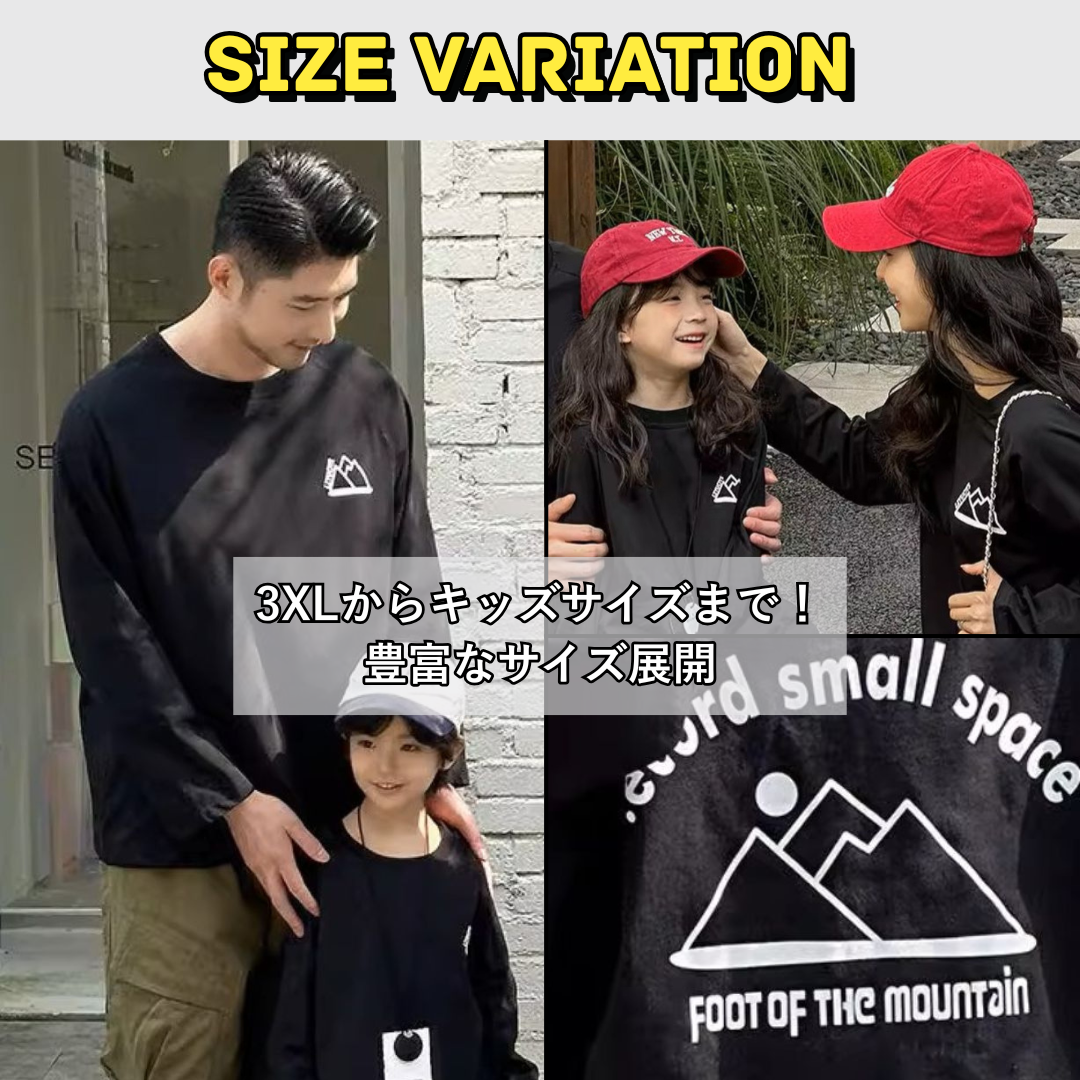 親子ペアルック 長袖Tシャツ アウトドア風 ファミリーお揃い コットンT