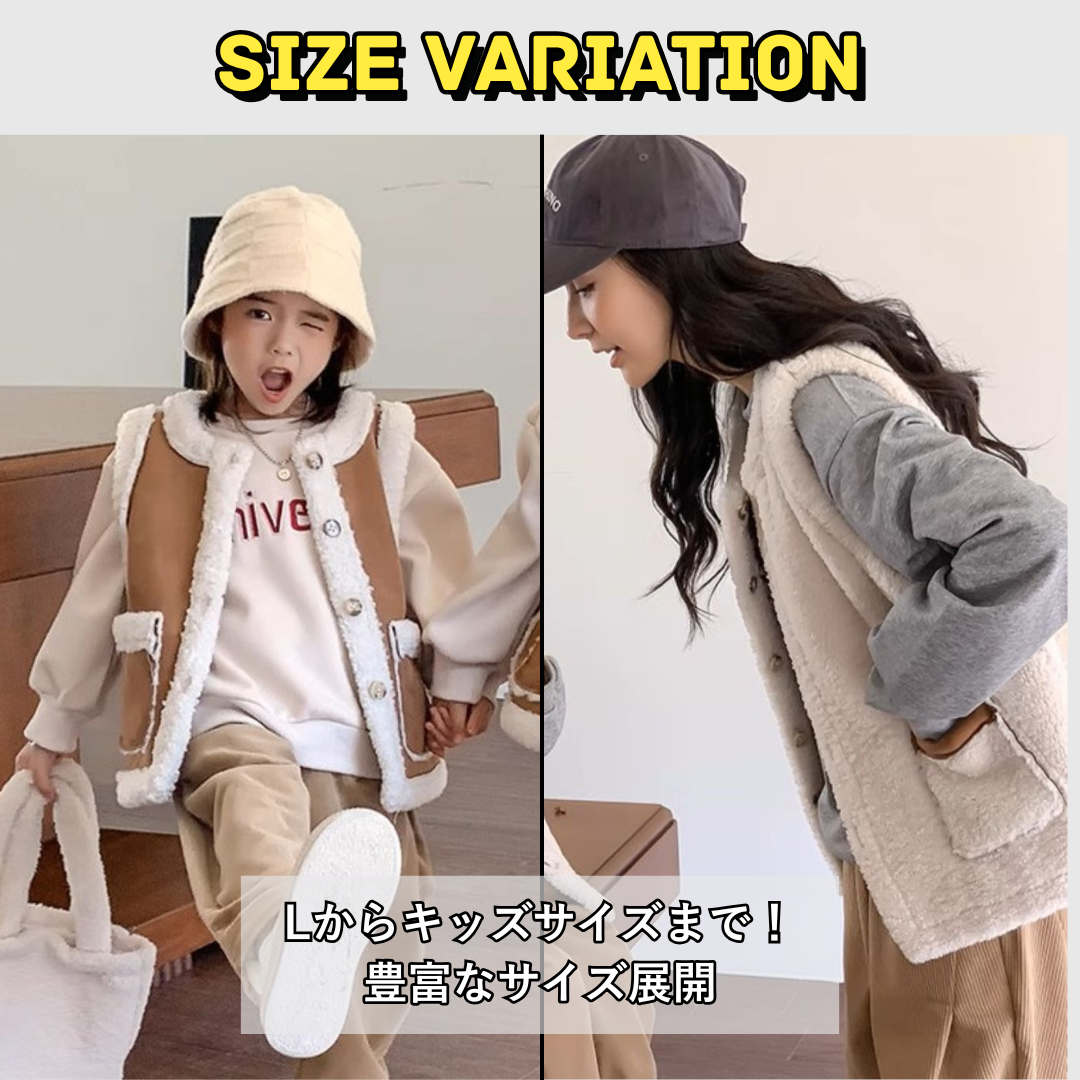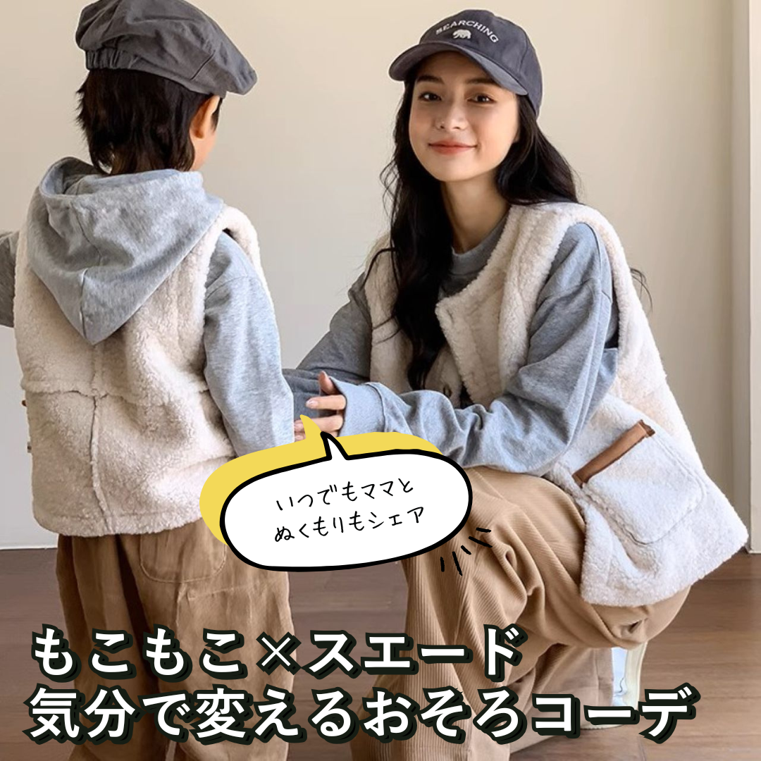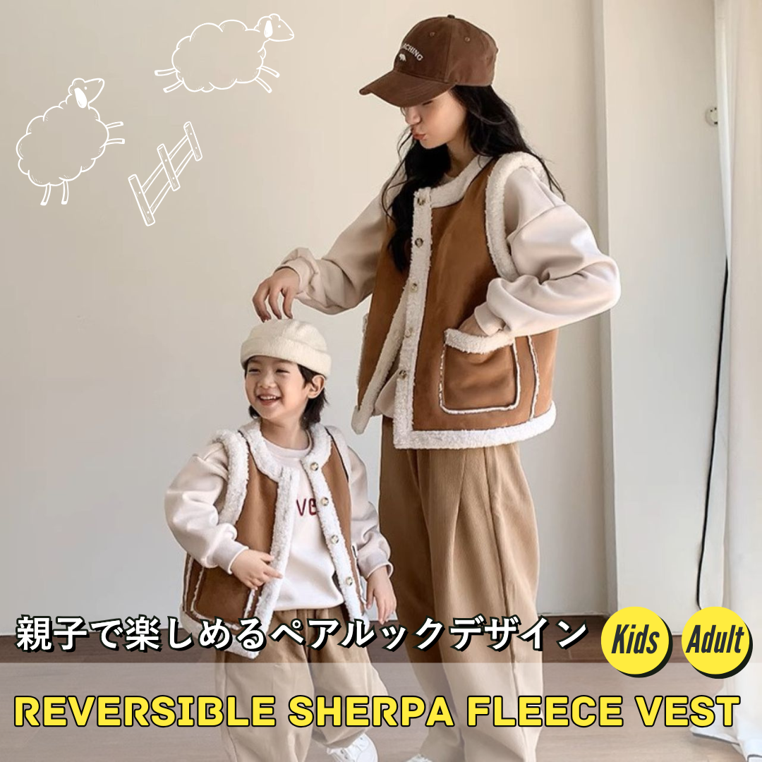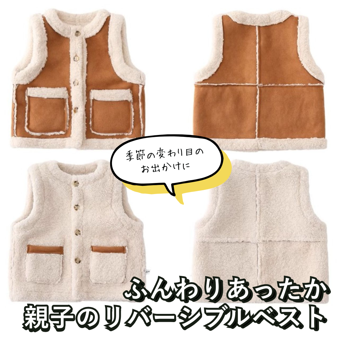 親子ペアルック リバーシブルベスト スエード風×羊毛フリース ファミリーお揃い