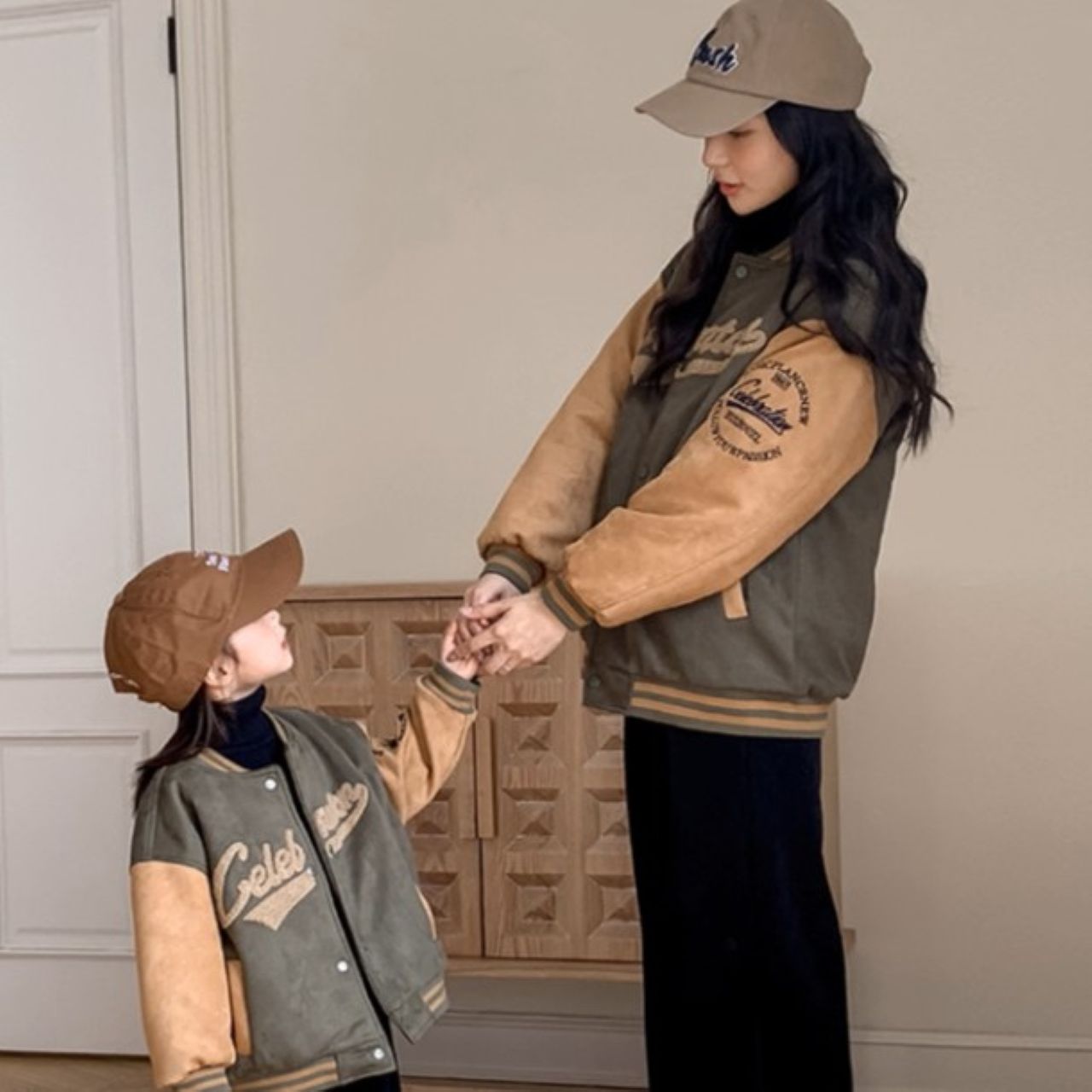 親子ペアルック【スタジャン風 中綿ジャケット】は、トレンド感と防寒性を両立させた頼れるリンクコーデアイテムです。ライトブラウン×カーキの絶妙な配色に、胸元と背中のロゴがアクセント。スタジャンのようなスポーティーデザインながら、中綿入りでふんわり暖かく、動きやすさも抜群です。ユニセックス仕様なので親子で気兼ねなく楽しめるのも魅力。お出かけや週末のアクティビティはもちろん、ちょっとした送迎や公園遊びにも活躍します。お揃いで着るだけで、一体感と絆が感じられる特別な一着です。