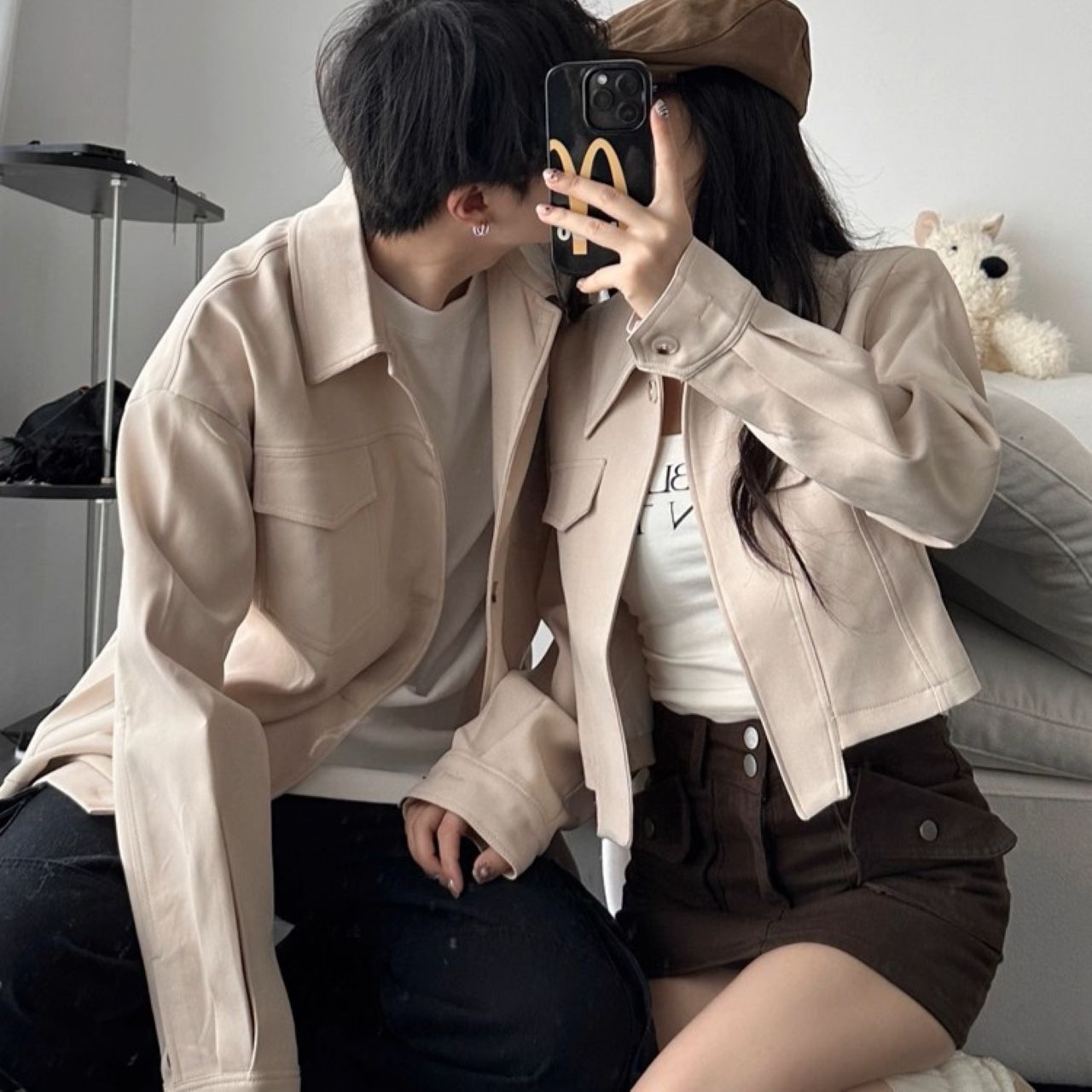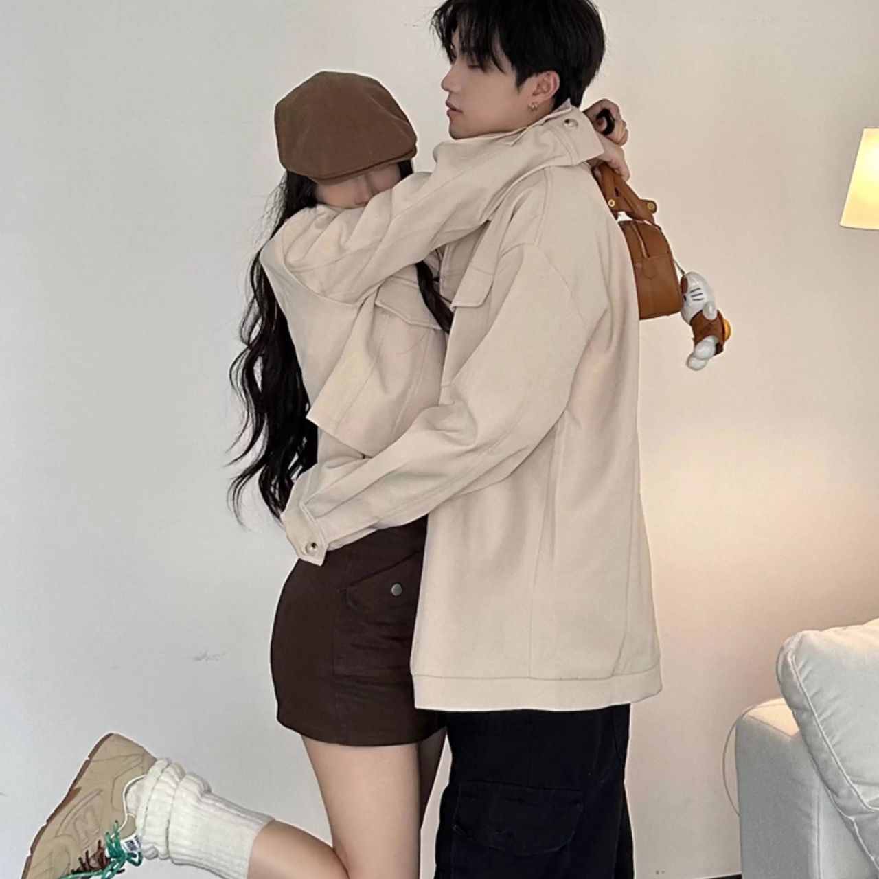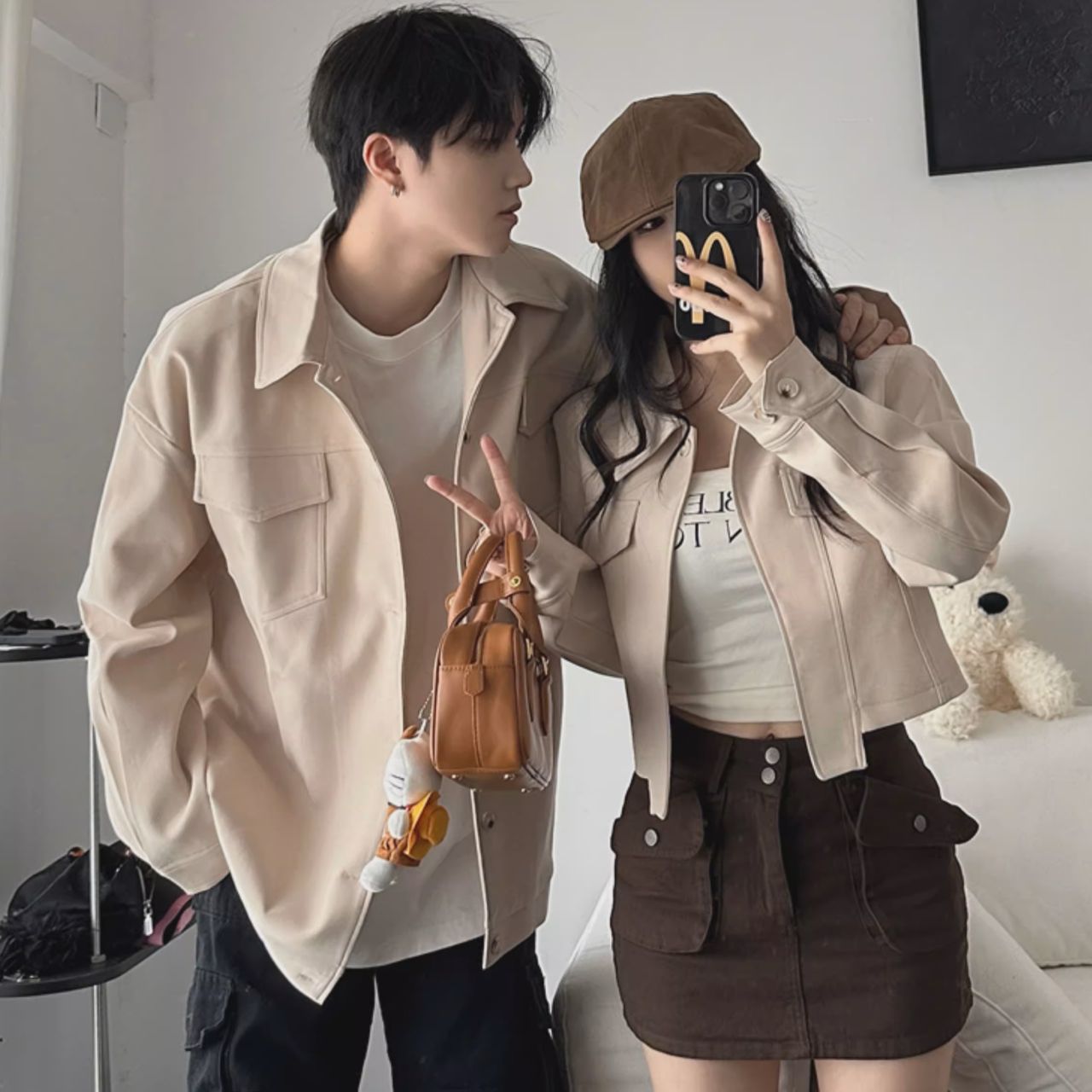 カップルペアルック ベージュジャケット シンプルカジュアル
