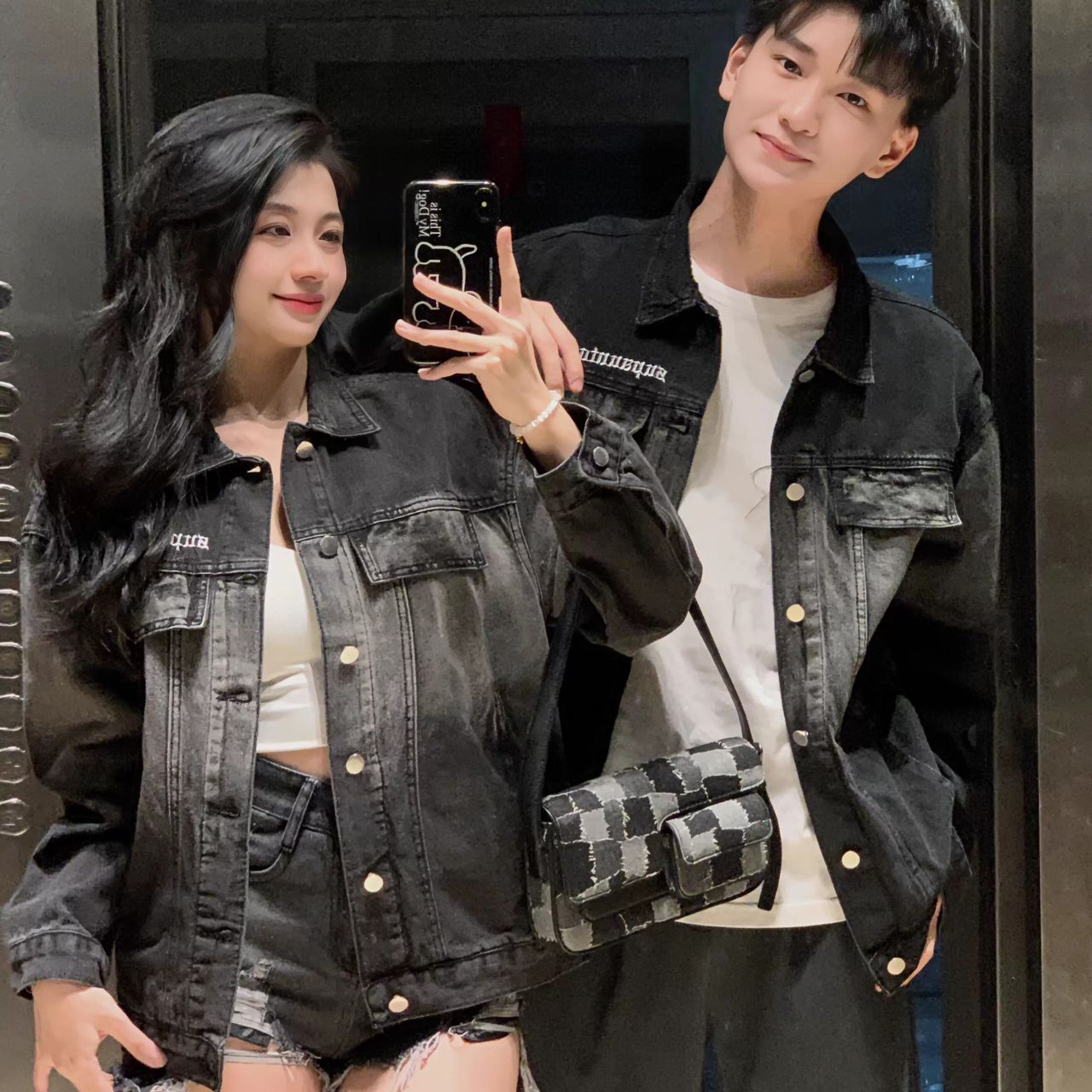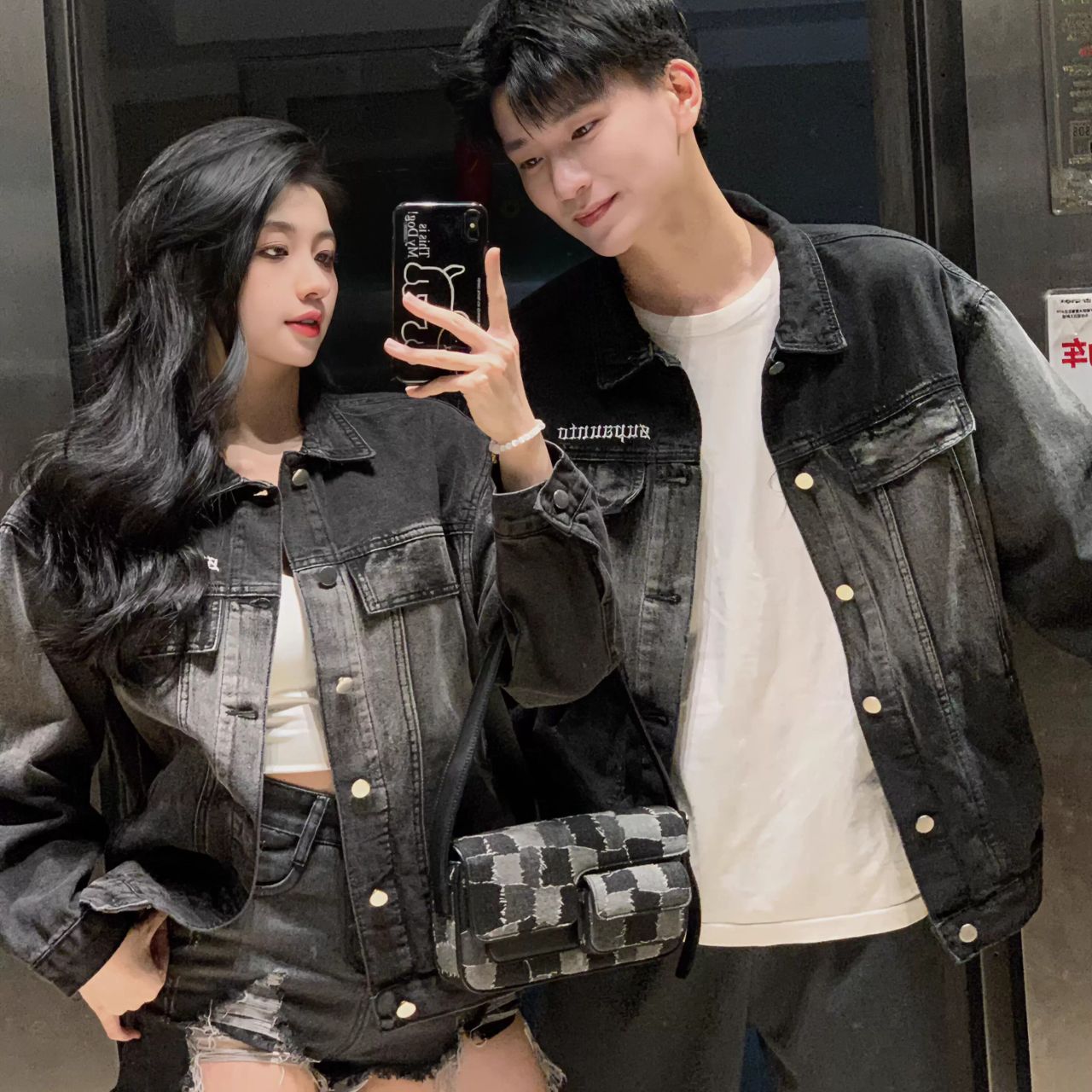 カップルペアルック【デニムジャケット ハイストリート風 ダメージ加工 ゆったりシルエット】は、トレンド感のあるデザインと程よいダメージ加工が魅力の一枚です。ブラックデニムの絶妙な色落ちがアクセントとなり、カジュアルながらも洗練された印象を与えます。ゆったりとしたシルエットで快適に着られ、ユニセックス仕様のためカップルで楽しめるのもポイントです。リンクコーデとして取り入れれば、特別な絆を感じつつ自由でクールなスタイルを演出できます。デートや友人との集まり、日常のコーディネートにも活躍する万能アイテムです。