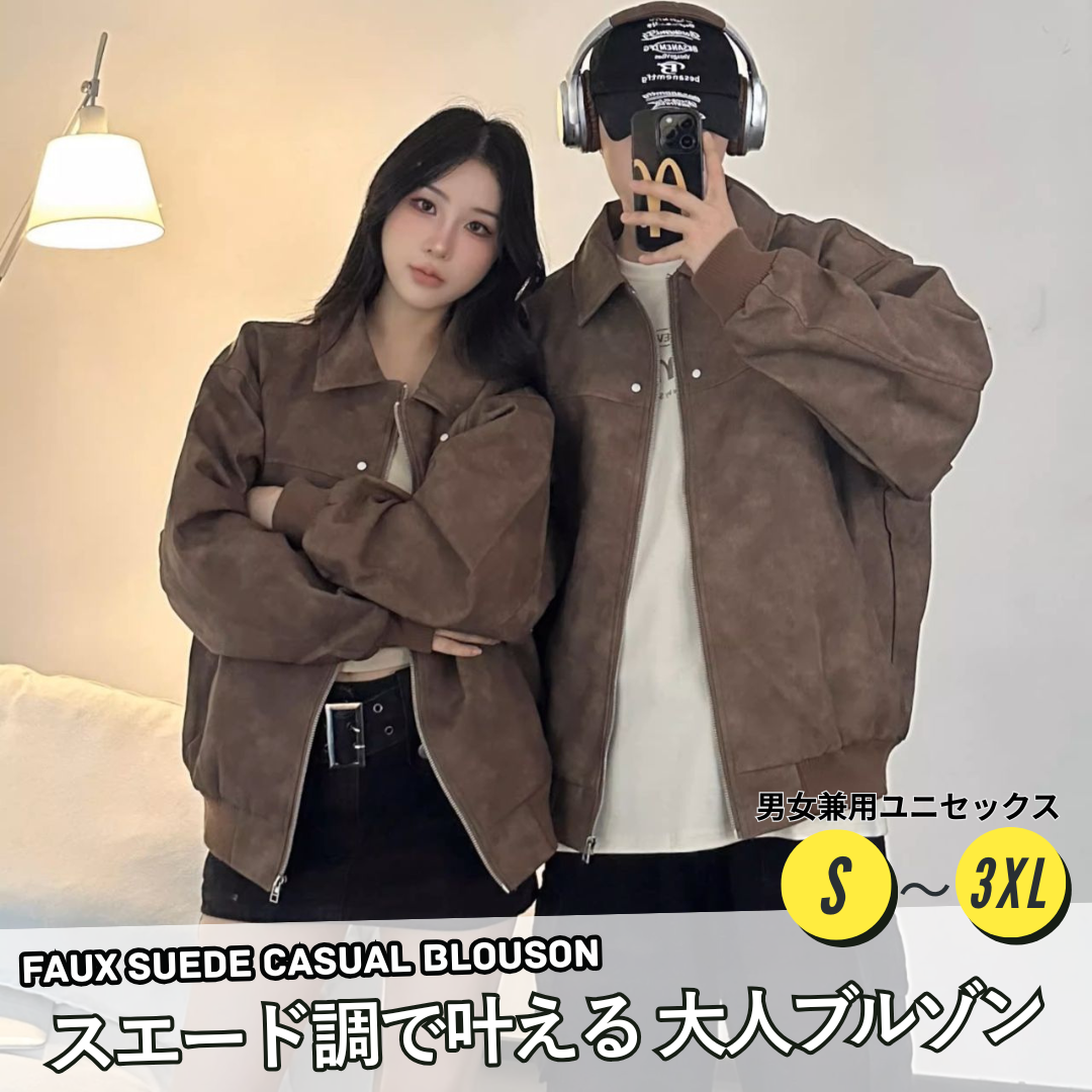 カップルペアルック スエード調ブルゾン カジュアルジャケット 男女兼用