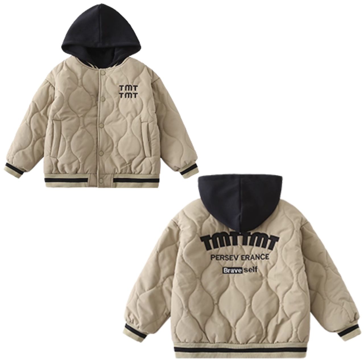 親子ペアルック くすみブラウン 中綿入りフードジャケット