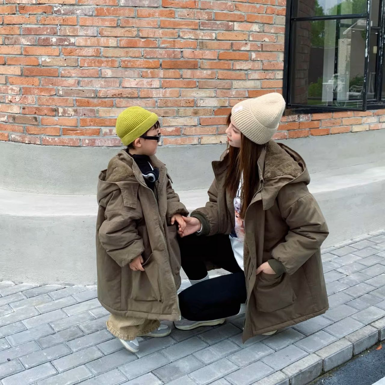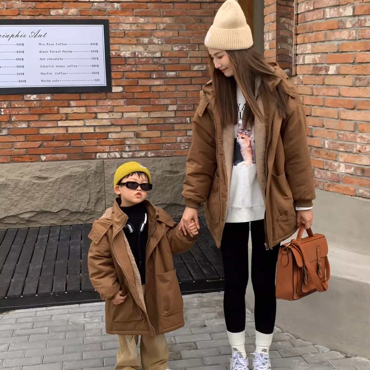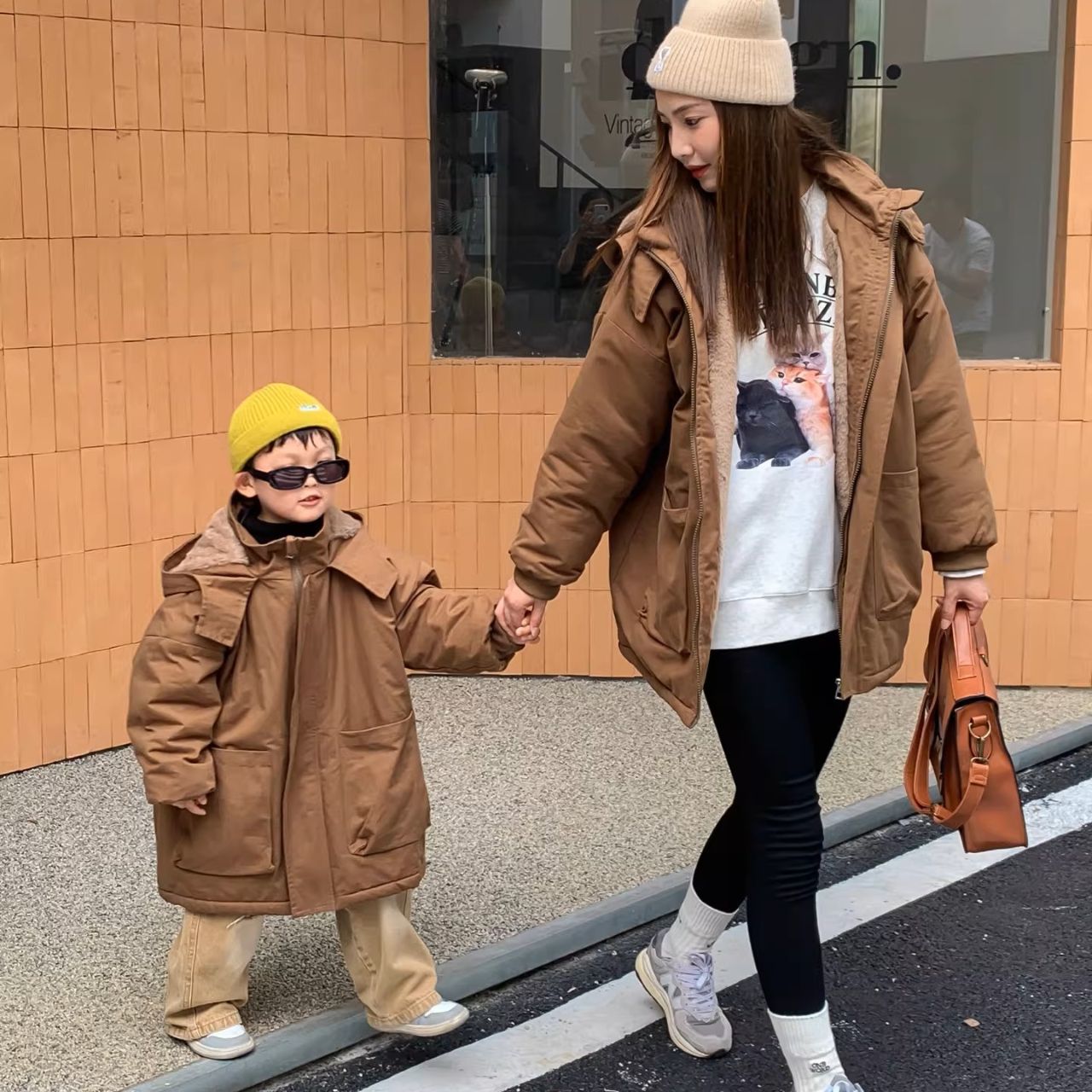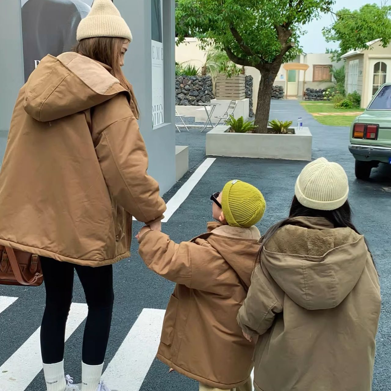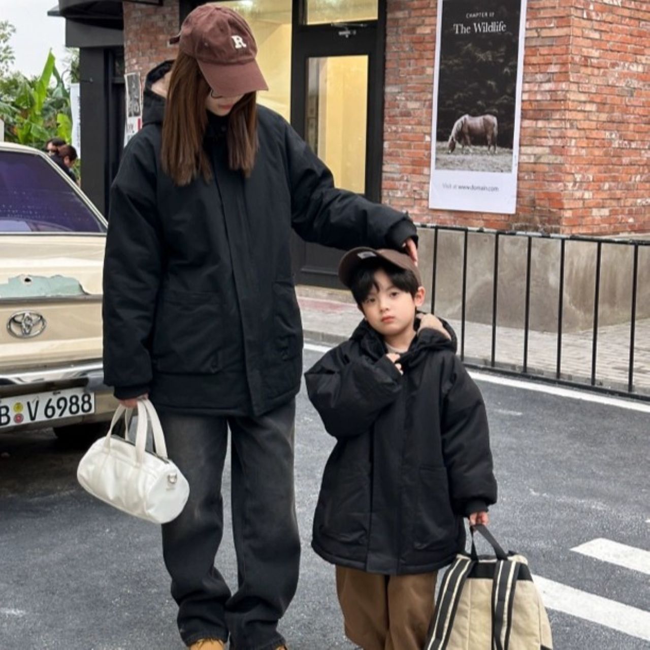 親子ペアルック【パーカースタイル 中綿コート】は、親子リンクを楽しめる、暖かく機能的なアウターです。軽量ながら保温性に優れた中綿素材を使用し、内側のモコモコ生地がしっかりと暖かさをキープ。寒い季節でも快適に過ごせます。ユニセックスデザインで親子おそろいのコーデが楽しめ、カジュアルながらも洗練された印象に。公園での散歩や家族でのお出かけなど、幅広いシーンで活躍する一着です。