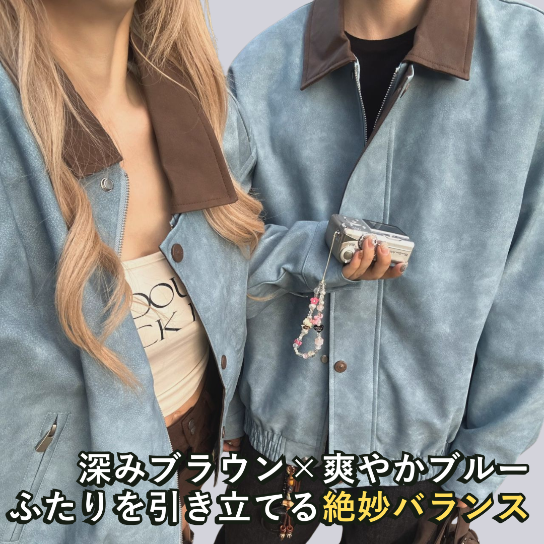 カップルペアルック ブラウン×ブルー ヴィンテージジャケット