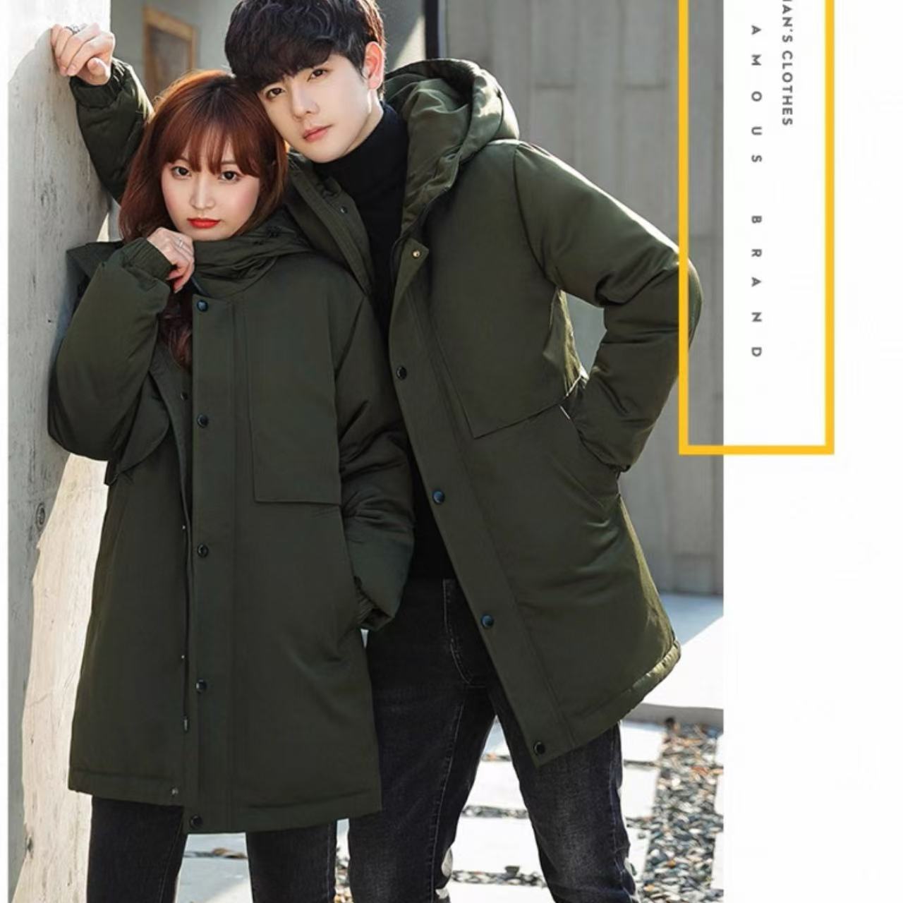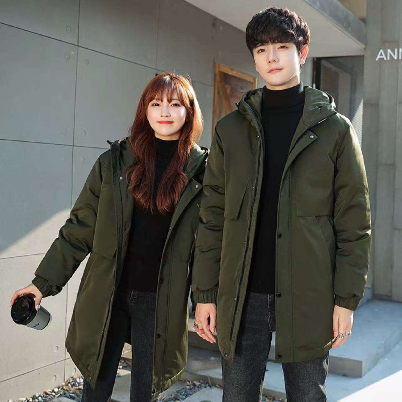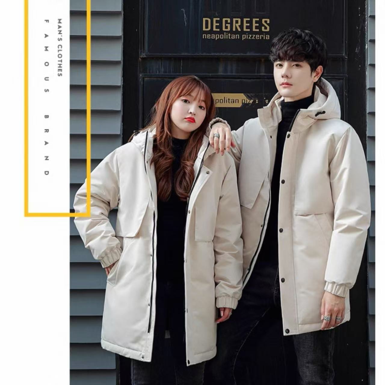 ペアルック フード付き 冬用ダウンジャケット