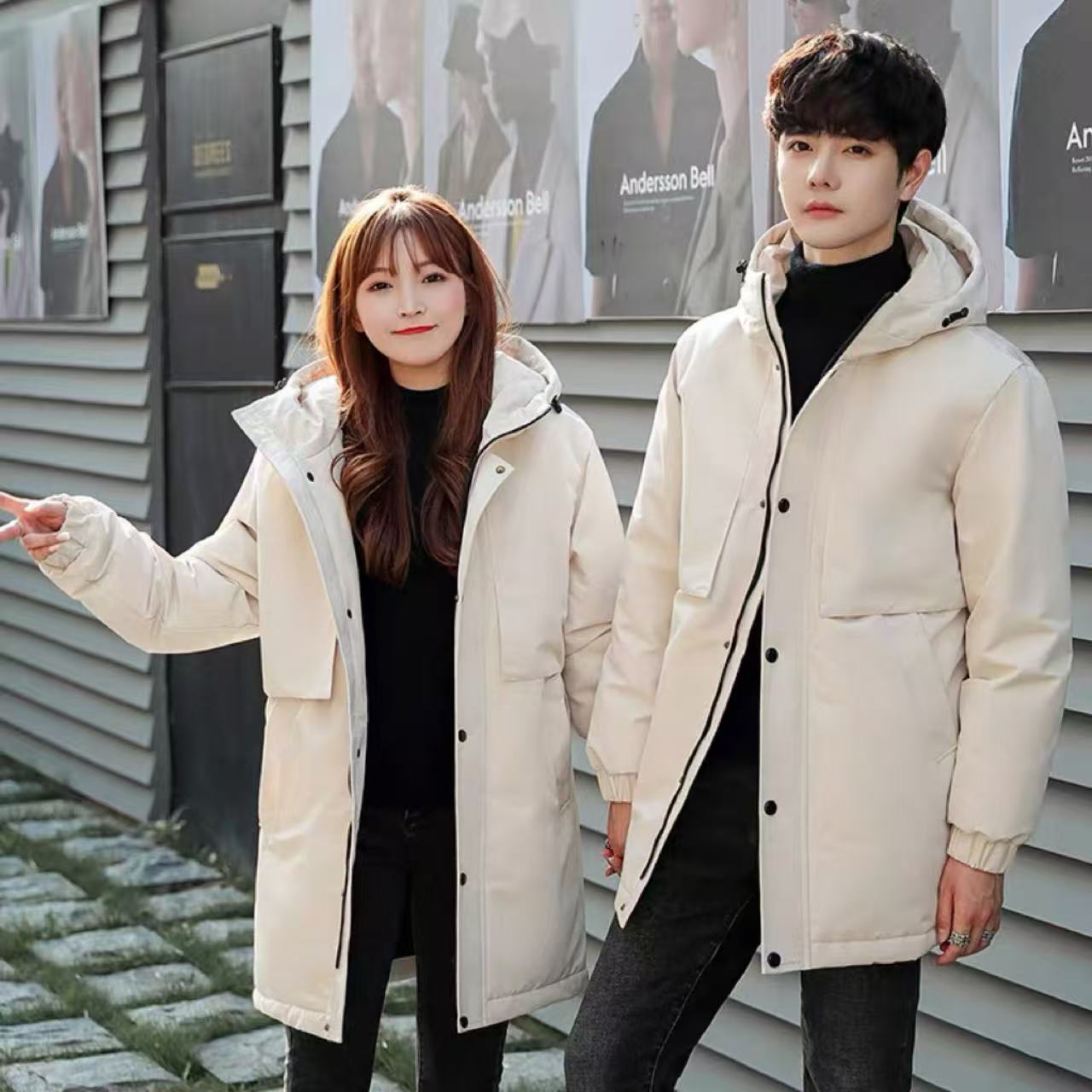 心温まるペアルックを楽しめるフード付き冬用ダウンジャケットです。スタイリッシュなデザインと高い保温性を兼ね備え、寒い季節の特別な時間を快適に過ごせます。落ち着いたカラーバリエーションを揃え、ユニセックスで豊富なサイズ展開のため、カップルや大切な人とリンクコーデを楽しむのにぴったりな一着です。