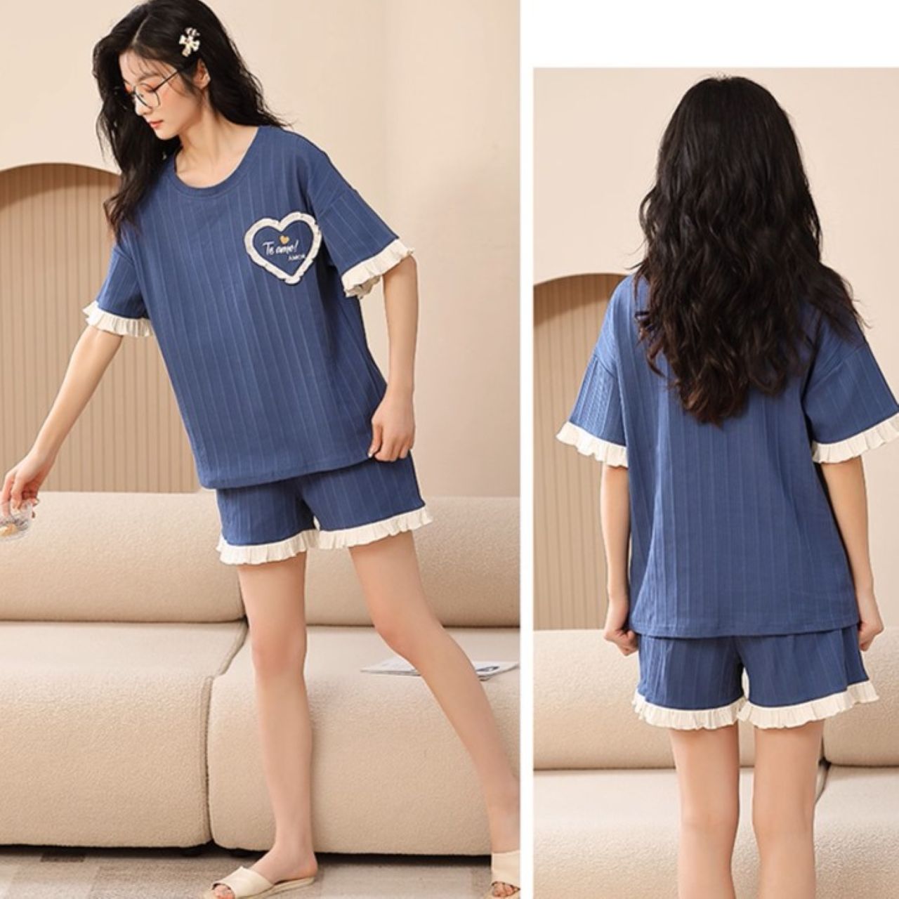 ペアルック シンプルコットンパジャマ(半袖×ショートパンツ、ゆったりサイズ)は、リラックスタイムを快適かつおしゃれに演出するアイテムです。肌触りの良いコットン素材で体に優しくフィットし、ゆったりサイズでくつろぎやすい設計。半袖トップスとショートパンツのセットで、豊富なサイズ展開もあり、カップルでお揃いコーデを楽しめます。