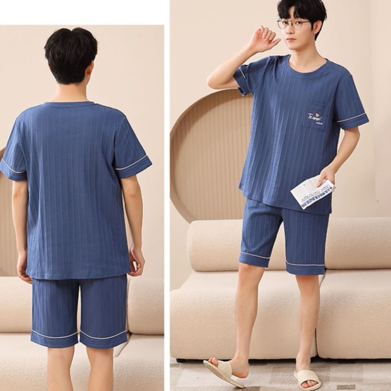 ペアルック シンプルコットンパジャマ(半袖×ショートパンツ、ゆったりサイズ)