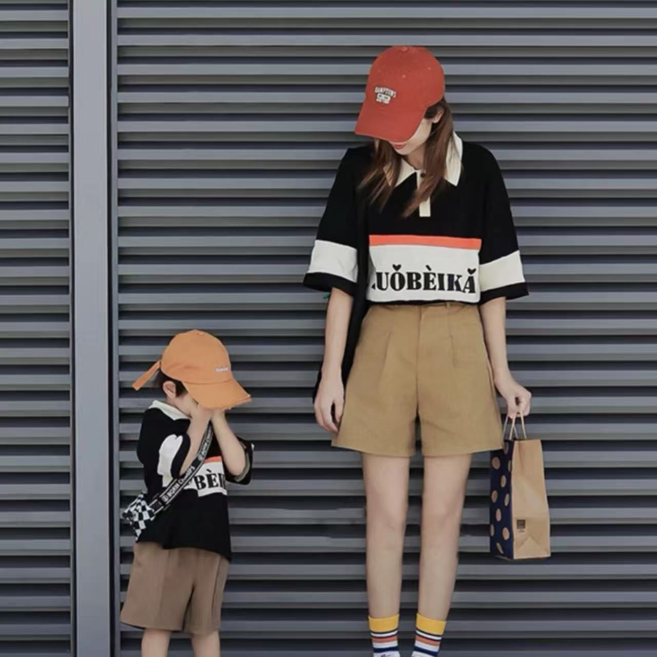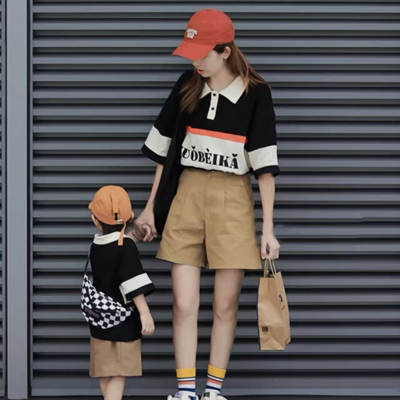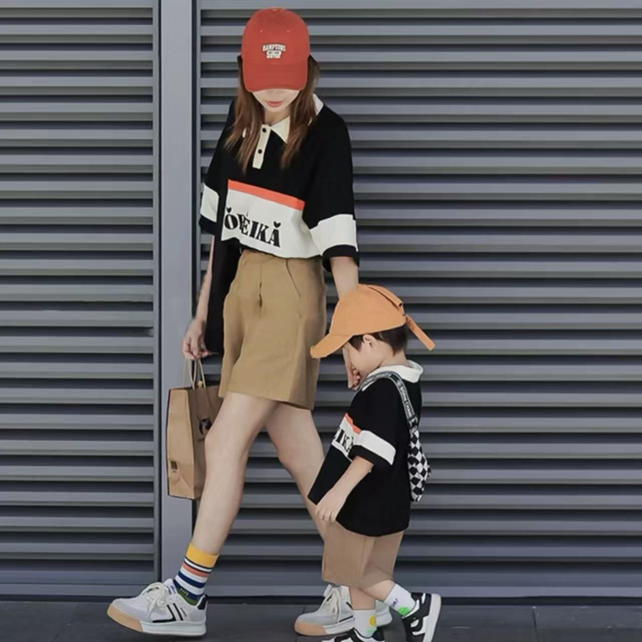 親子ペアルック 洗練シック エレガント 母娘ポロシャツ