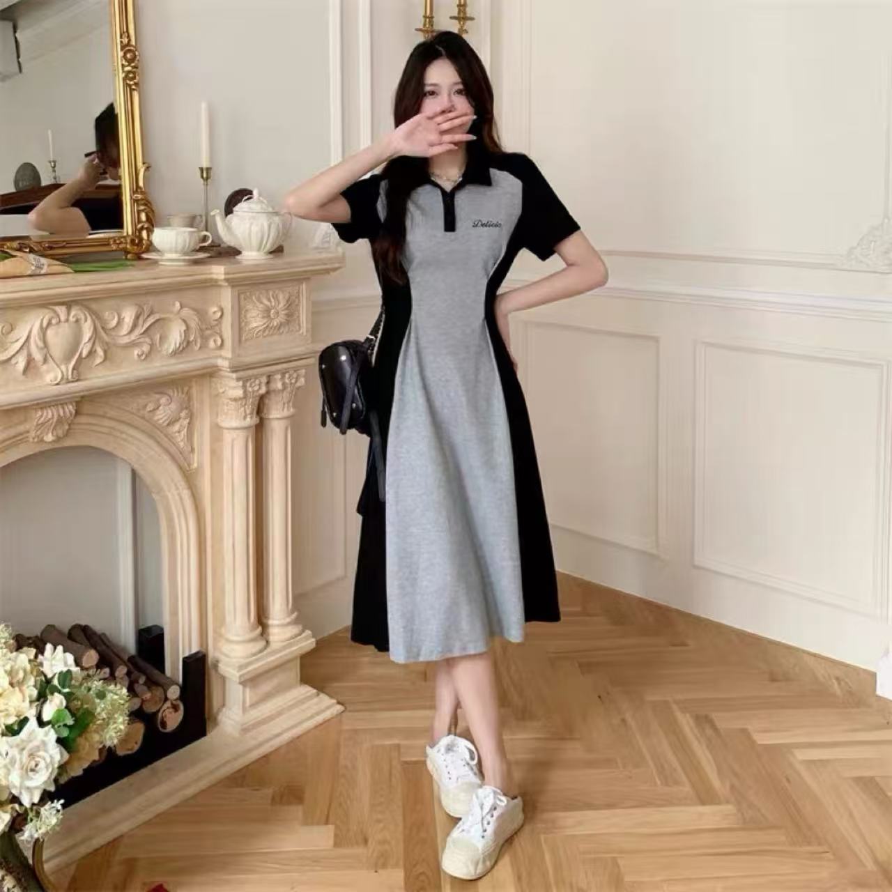 ペアルック 半袖ポロ襟Tシャツ ウエスト美ラインワンピース