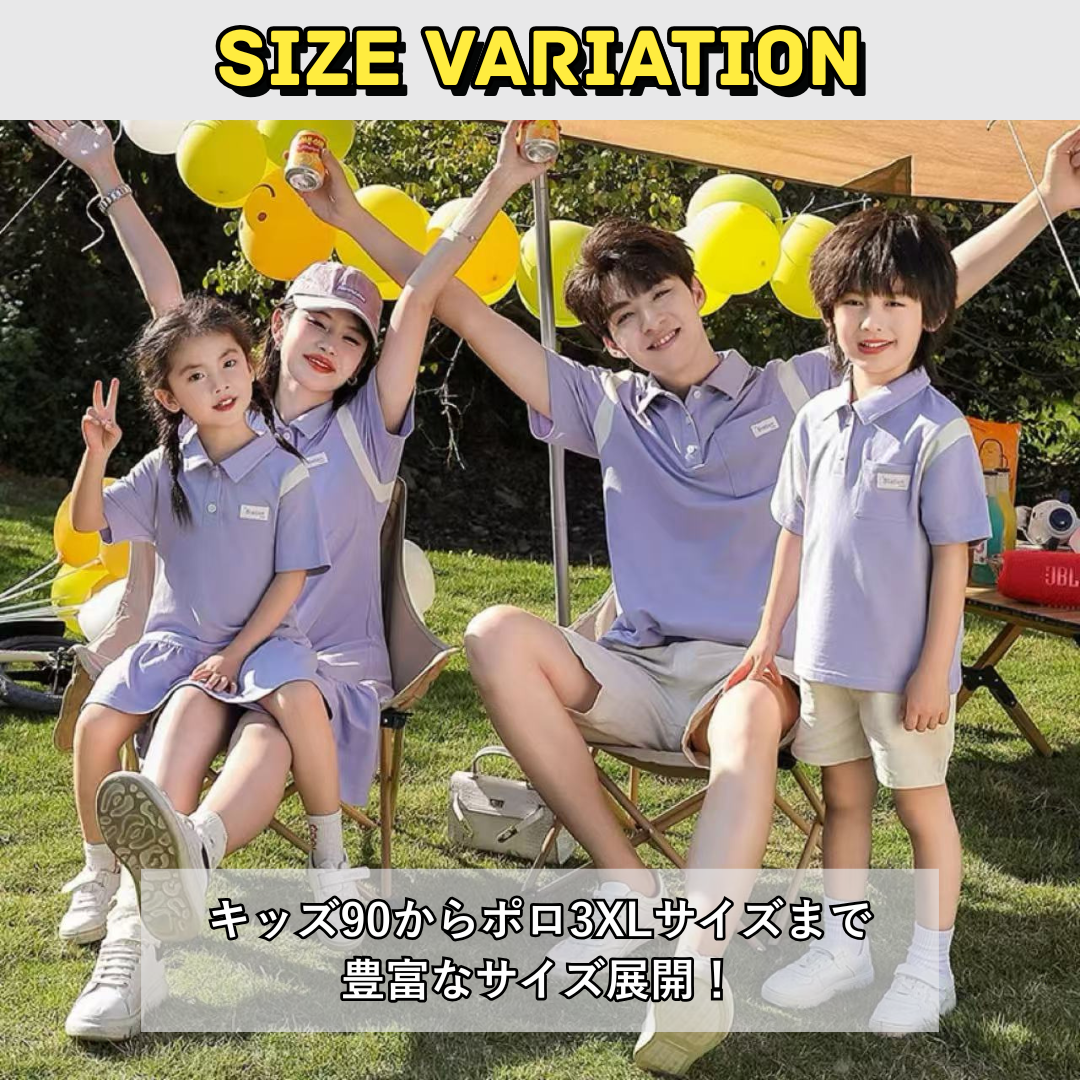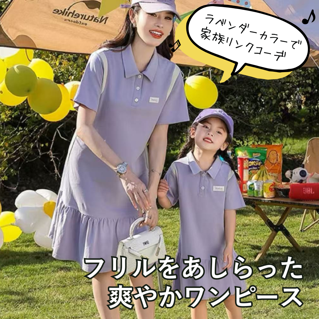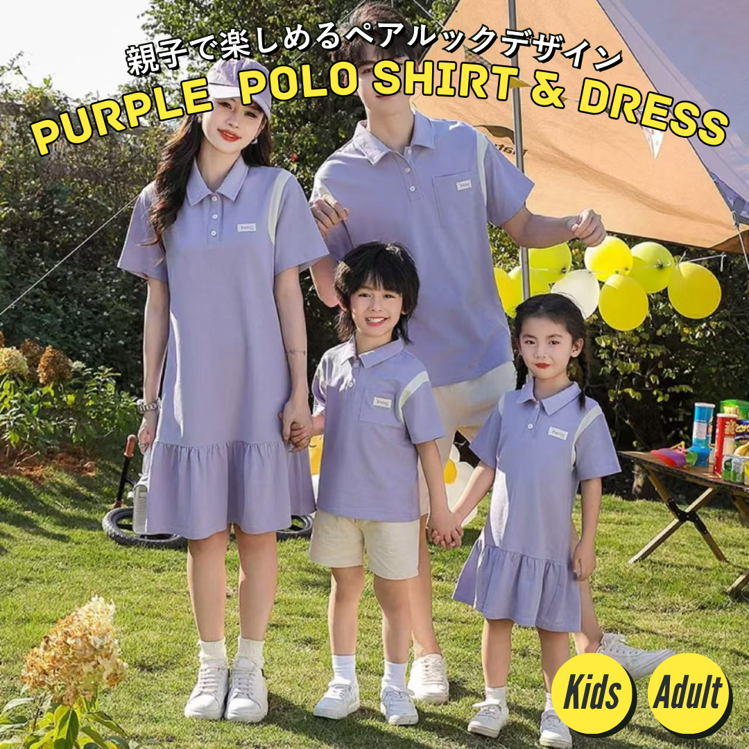 親子ペアルック パープルカラーリンク ポロ&ワンピース