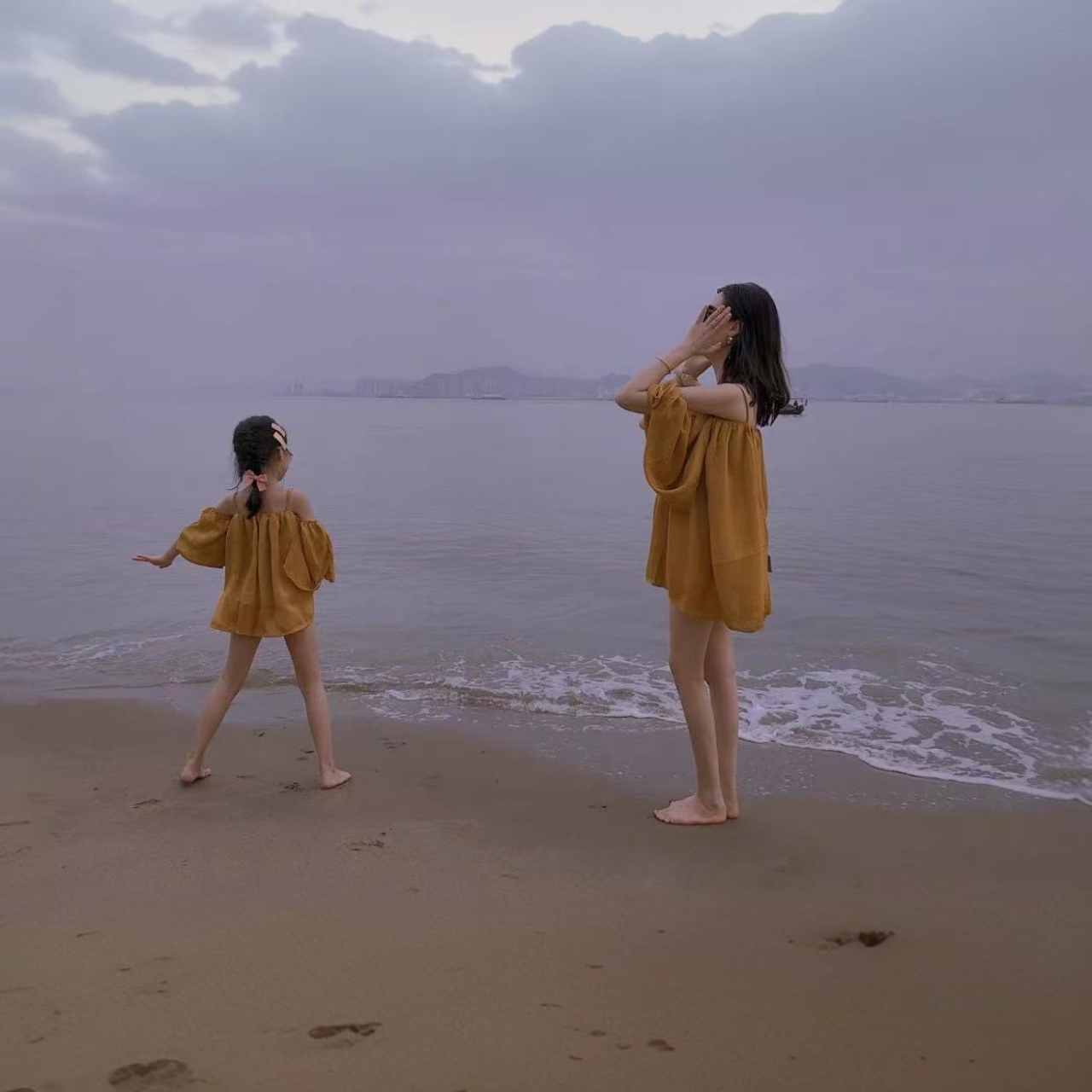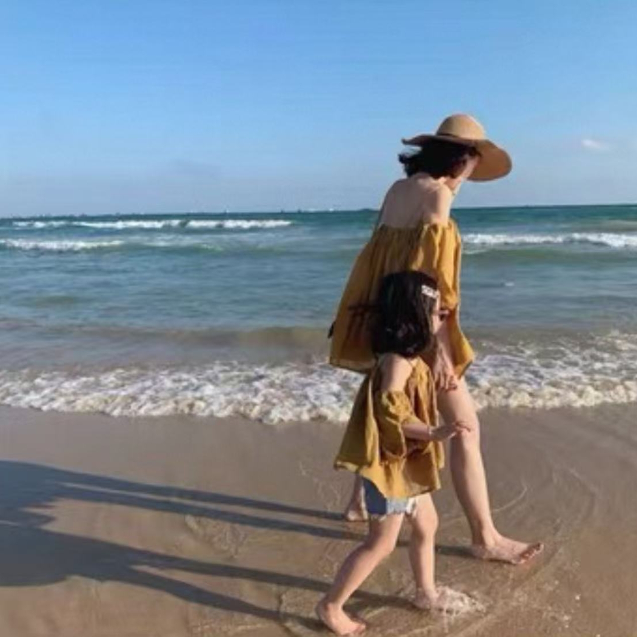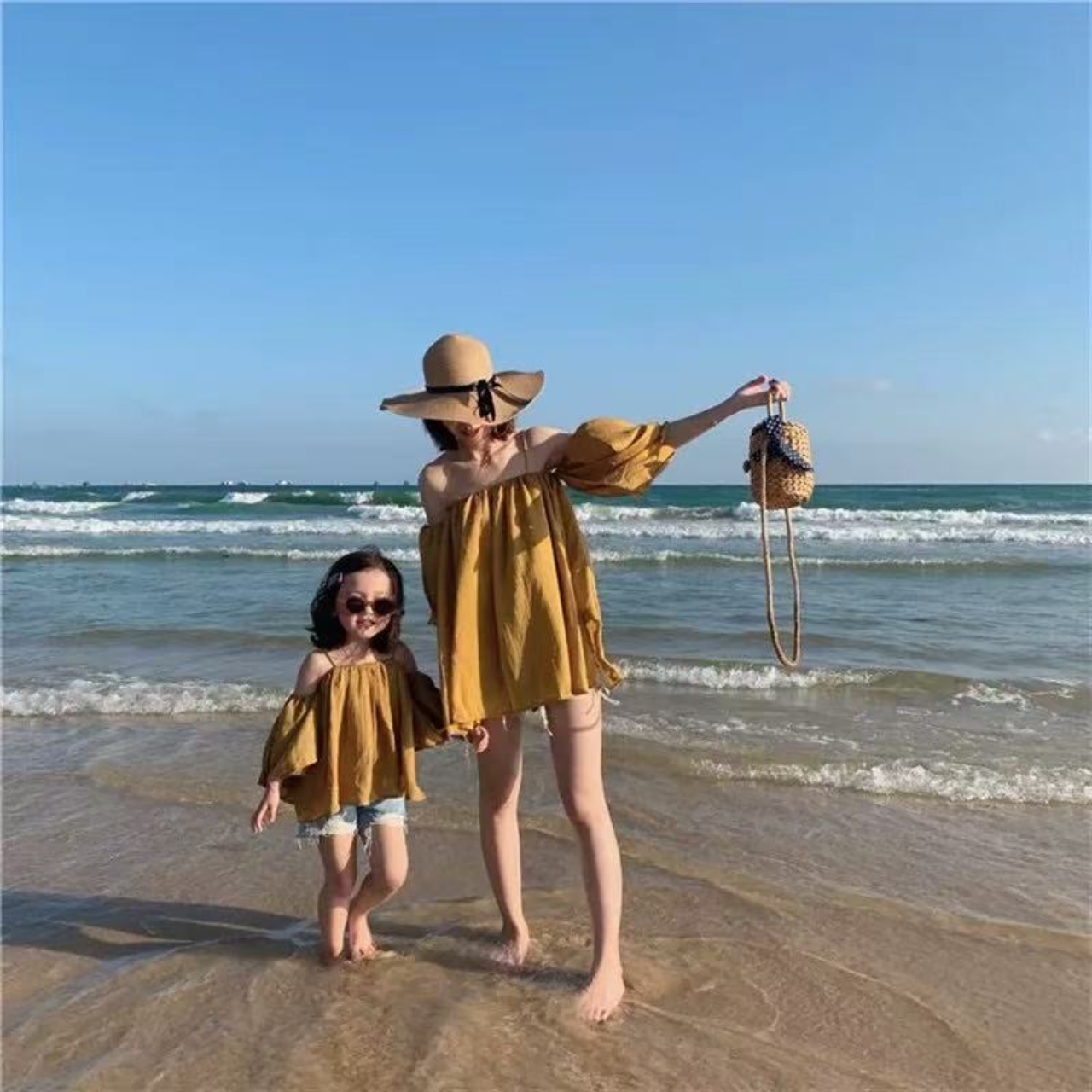 親子ペアルック 爽やかリゾート ワンショルダー 母娘ブラウス