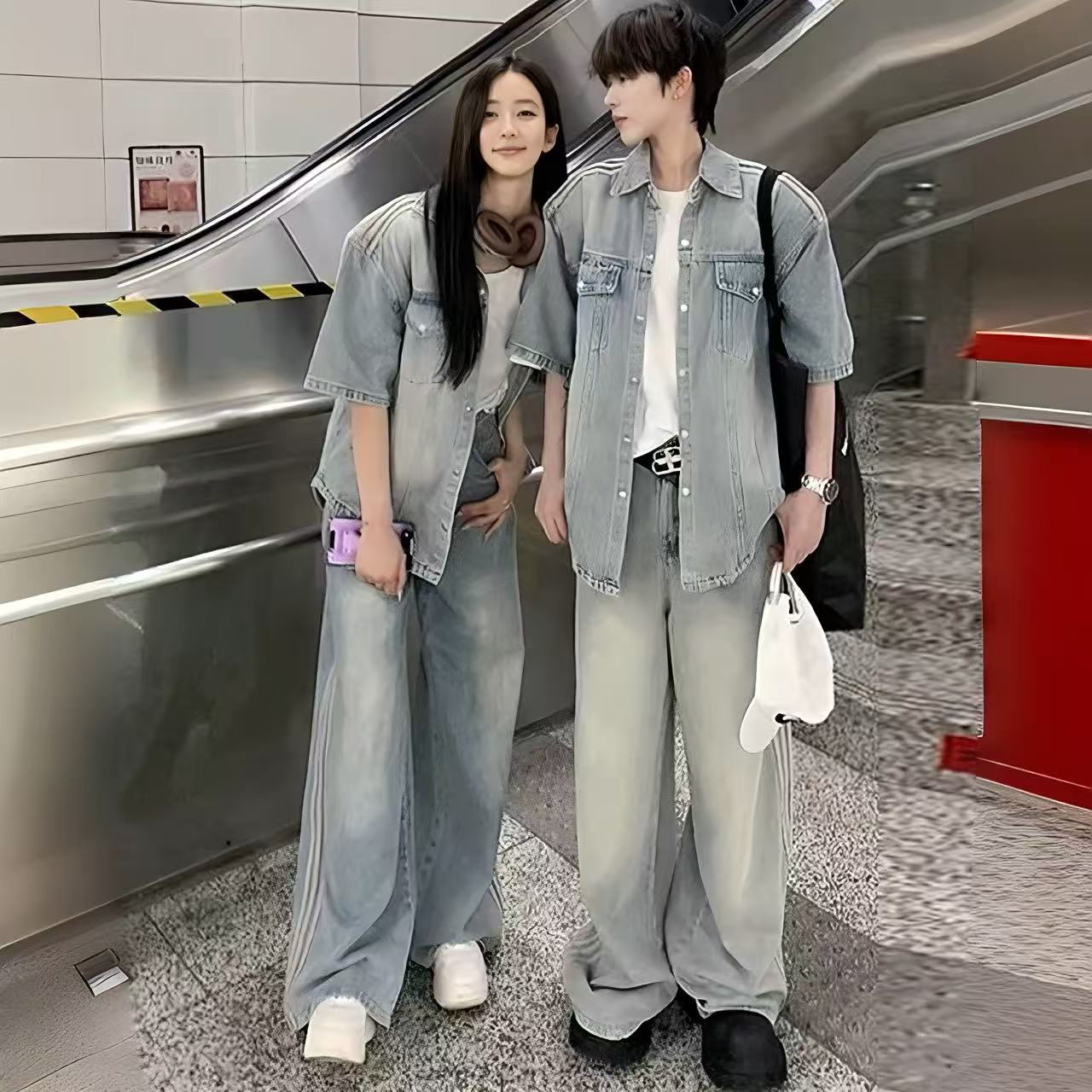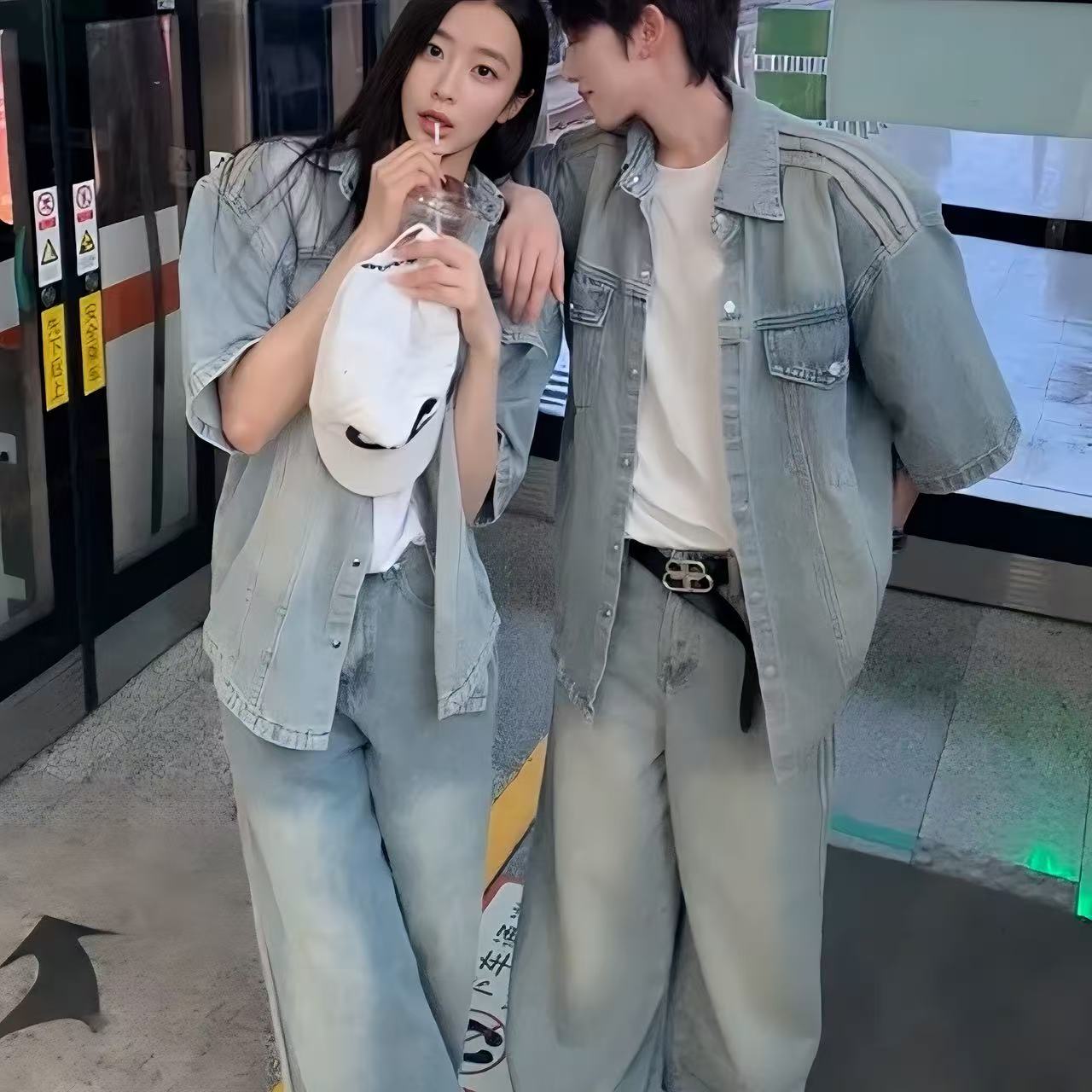 ペアルック【アメカジ風ライトデニムジャケット 五分袖 ショルダーライン】は、カジュアルさと洗練された雰囲気を兼ね備えたアイテムです。柔らかなライトデニム素材を使用し、涼しく快適に着られる五分袖デザインが特徴。ユニセックス仕様でカップルコーデに最適です。ショルダーラインがシンプルながらも存在感を放ち、コーデのアクセントに。さまざまなボトムスと合わせやすく、日常からお出かけまで活躍します。