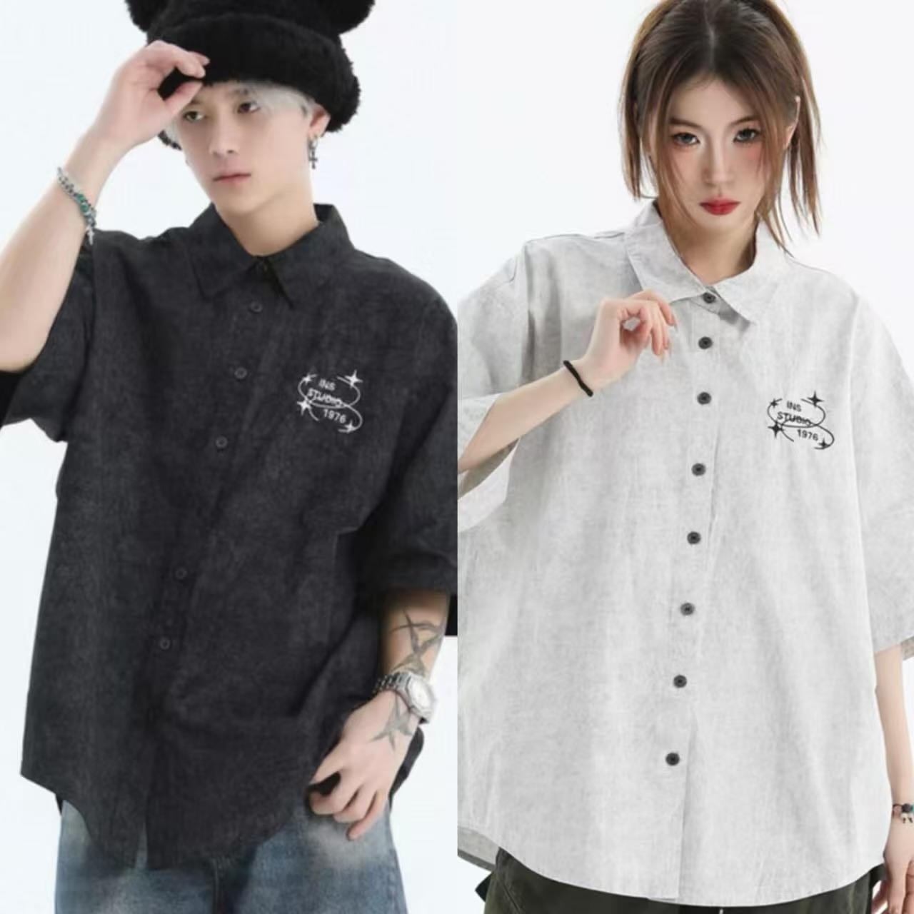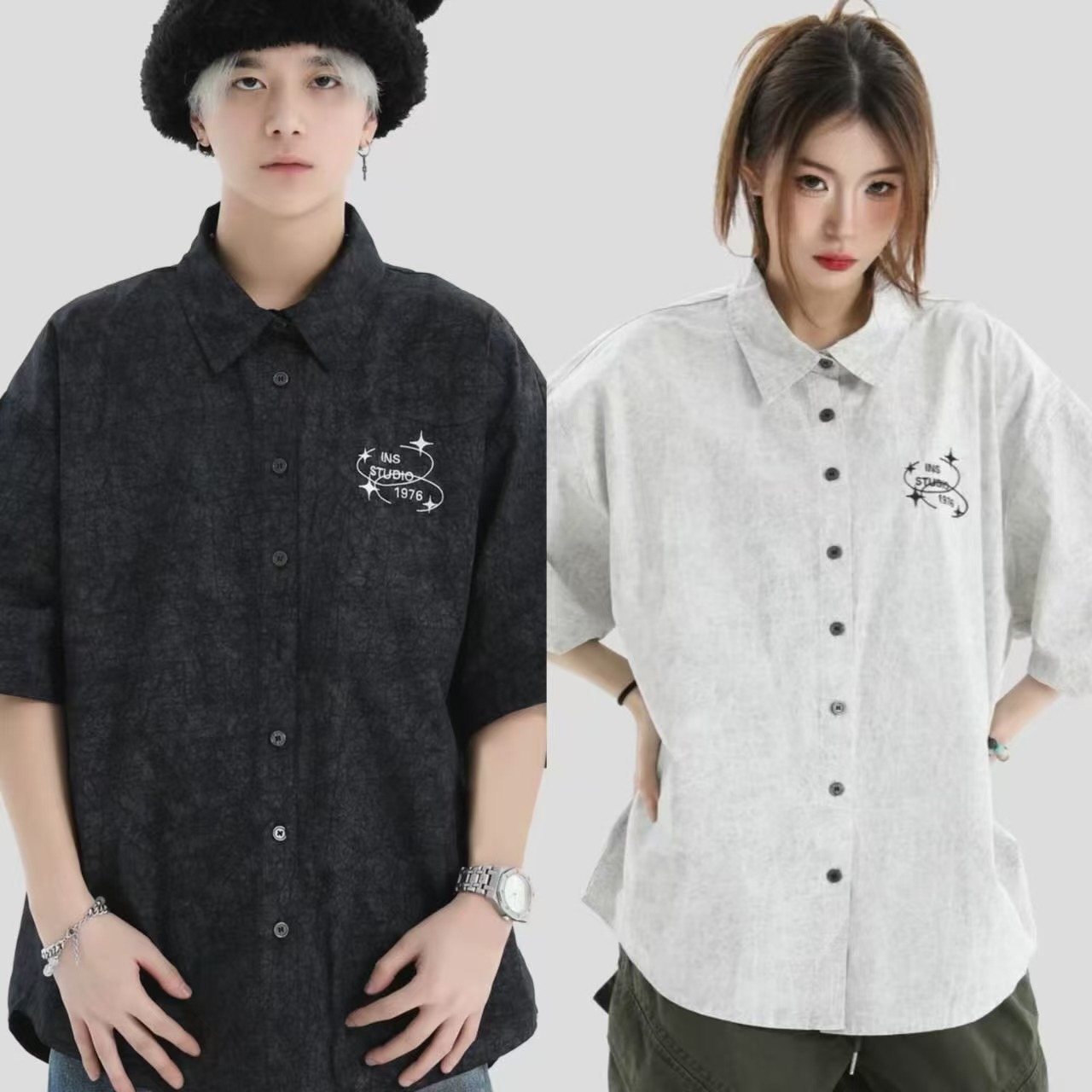 ペアルック【INSstudios 星型ロゴ入り ウォッシュド加工 半袖シャツ】は、個性とトレンドを兼ね備えたカップルコーデにぴったりのアイテムです。ユニークなスターロゴとダメージ加工がポイントで、アメカジ風のスタイリッシュな雰囲気を演出します。独特のウォッシュド加工は着るほどに味わいが増し、ユニセックスデザインで男女問わず楽しめます。さらりとした着心地で、デイリーからお出かけまで幅広く活躍する一枚です。