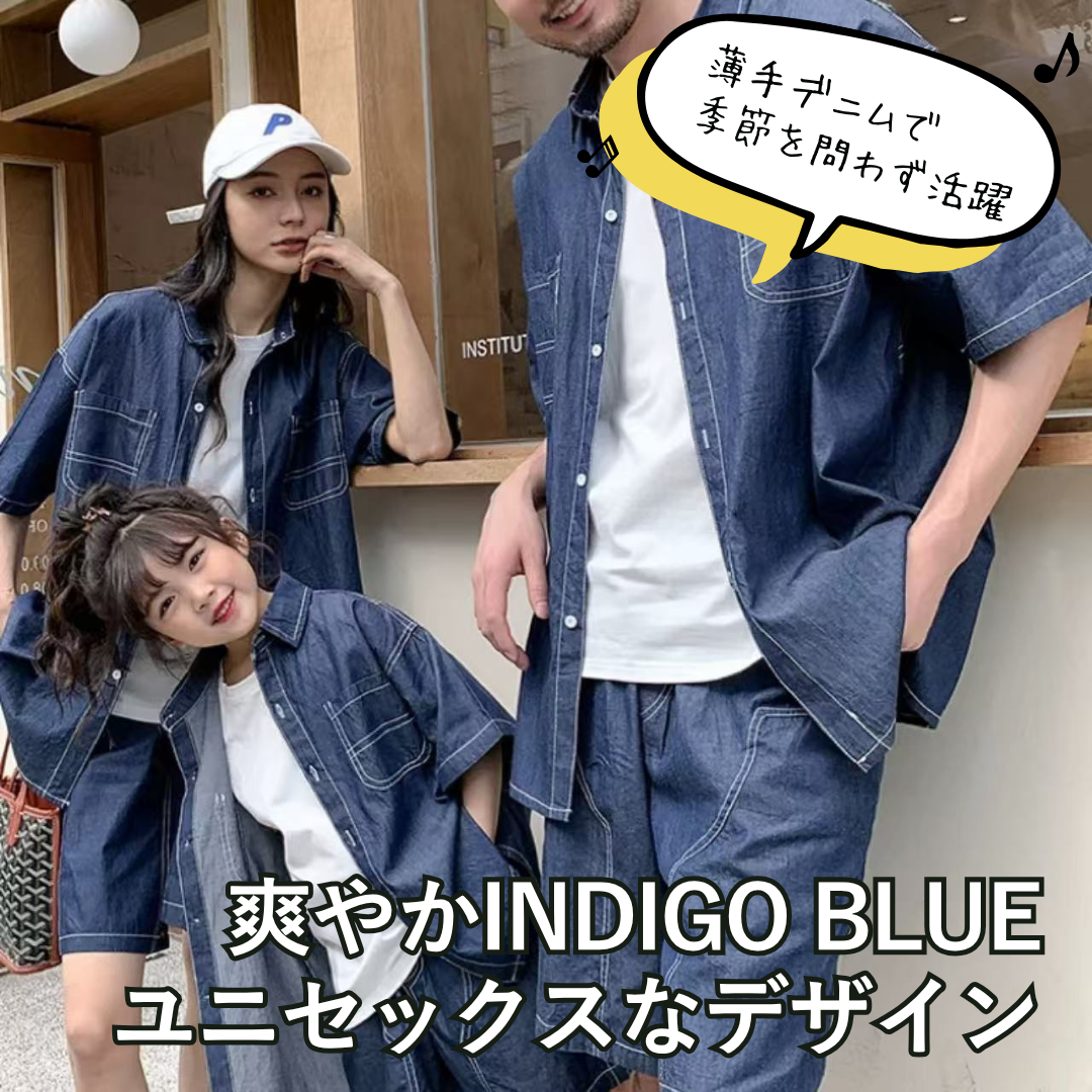 親子ペアルック【薄手デニムシャツ&ショートパンツ リンクコーデセット】は、親子で楽しめる爽やかなアイテムです。軽やかな薄手デニム素材とシンプルなデザインが魅力で、日常からお出かけまで幅広く活躍します。柔らかく快適な着心地を実現し、動きやすさも抜群です。ユニセックスデザインのため親子でお揃いコーデが可能。シャツとショートパンツの組み合わせが家族の絆を感じさせ、特別な瞬間を彩ります。
