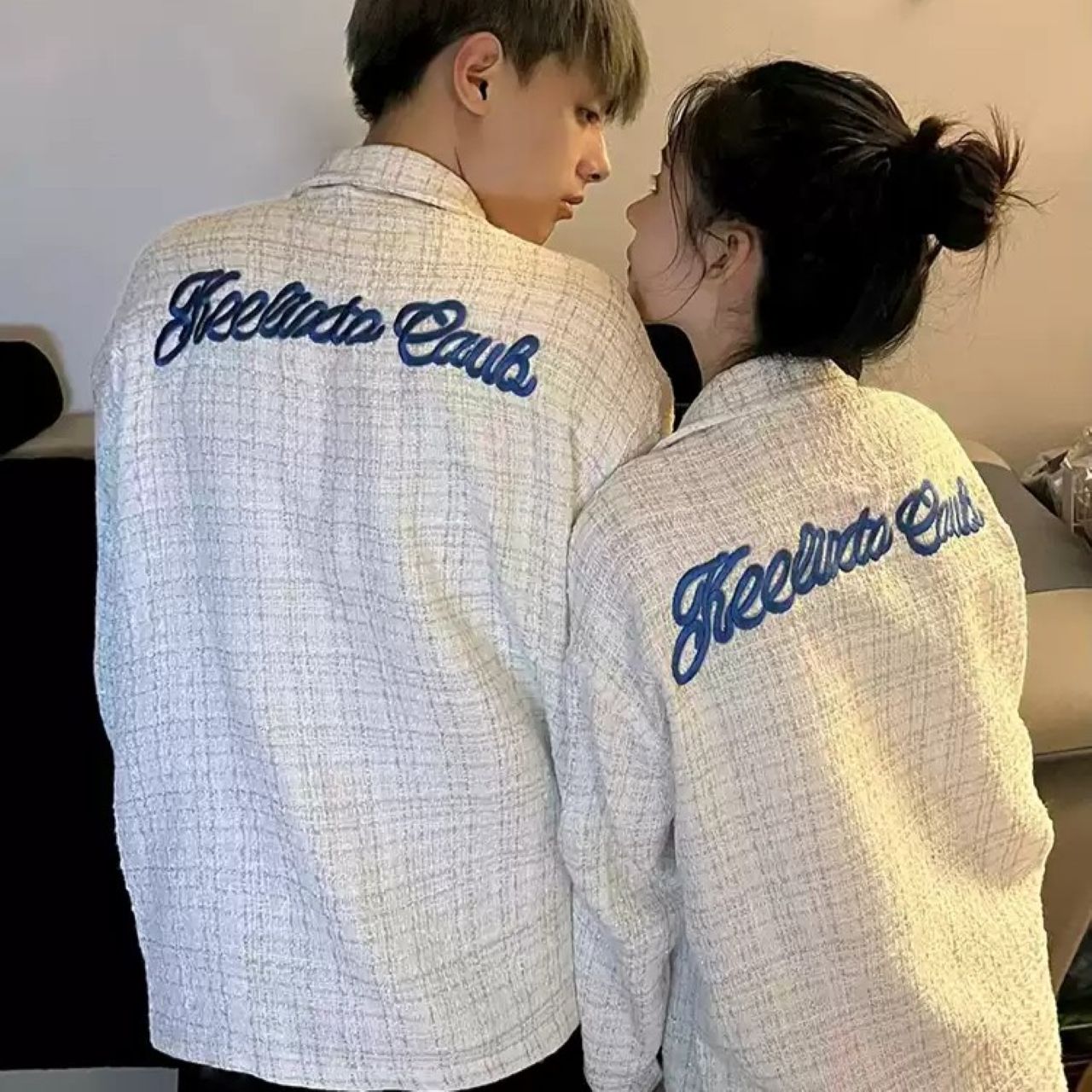 カップルペアルック【バック刺繍入りシャツジャケット】は、上質な素材にさりげないチェック柄を組み合わせ、背面の刺繍がアクセントになったユニセックスアイテムです。ストレートカットの裾がすっきりとした印象を与え、カジュアルながらも洗練された雰囲気を演出します。カップルで着用すれば、お揃いコーデに特別感を添え、日常からお出かけまで幅広いシーンで活躍します。