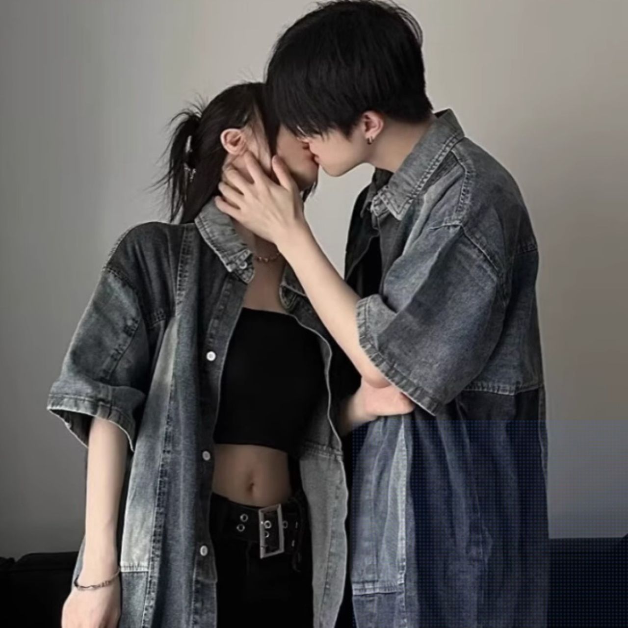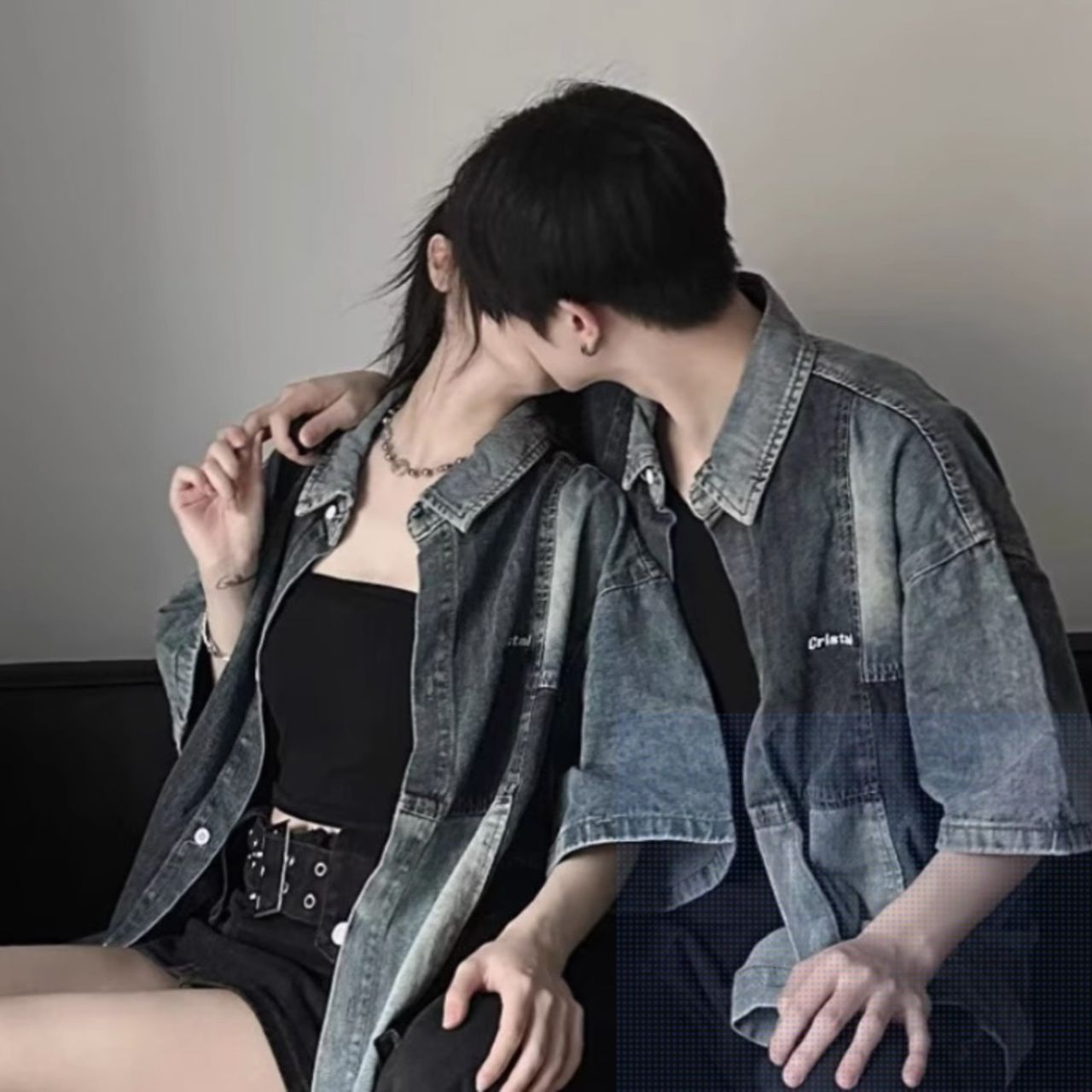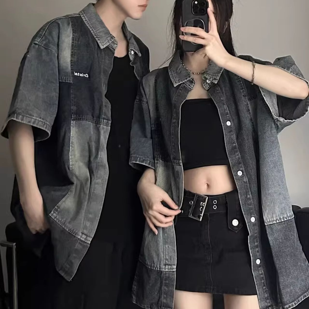 ペアルック アメリカンレトロのデニム半袖シャツ ゆったりトレンドジャケット