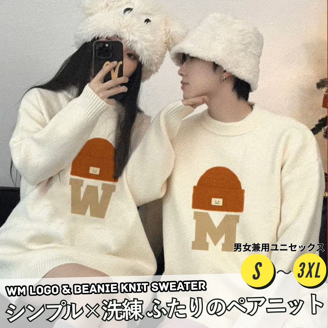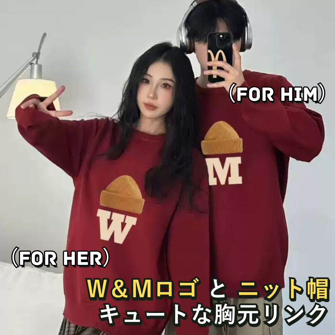 カップルペアルック WMロゴ&キャップデザイン ニット