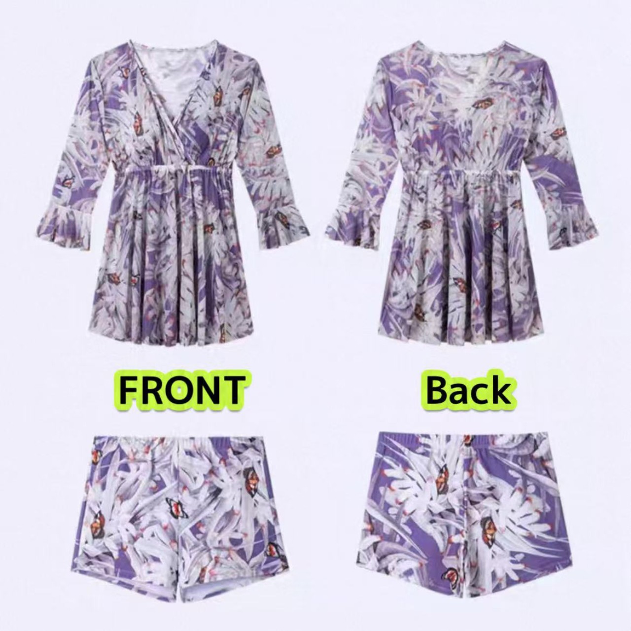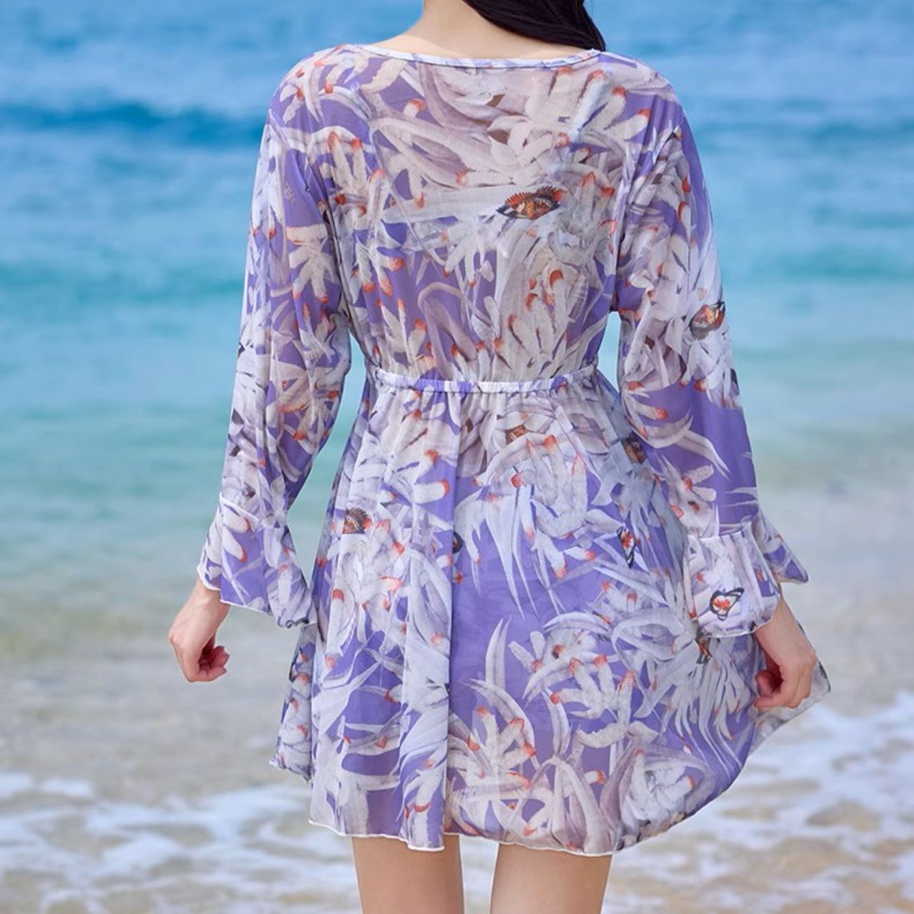 優しいラベンダーカラーに繊細な花柄が映える、フェミニンなワンピースタイプの水着です。体のラインを美しく引き立てながら、気になる部分はしっかりカバー。落ち着いた色味と上品なデザインで、大人の女性にぴったりの一着です。