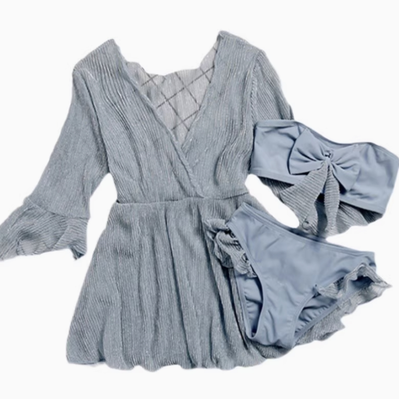 親子ペアルック 爽やかブルー スリーピース 母娘水着